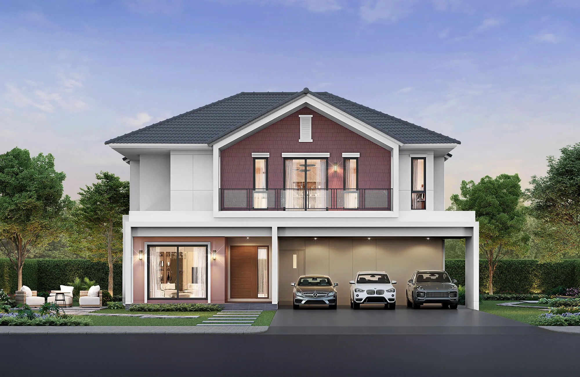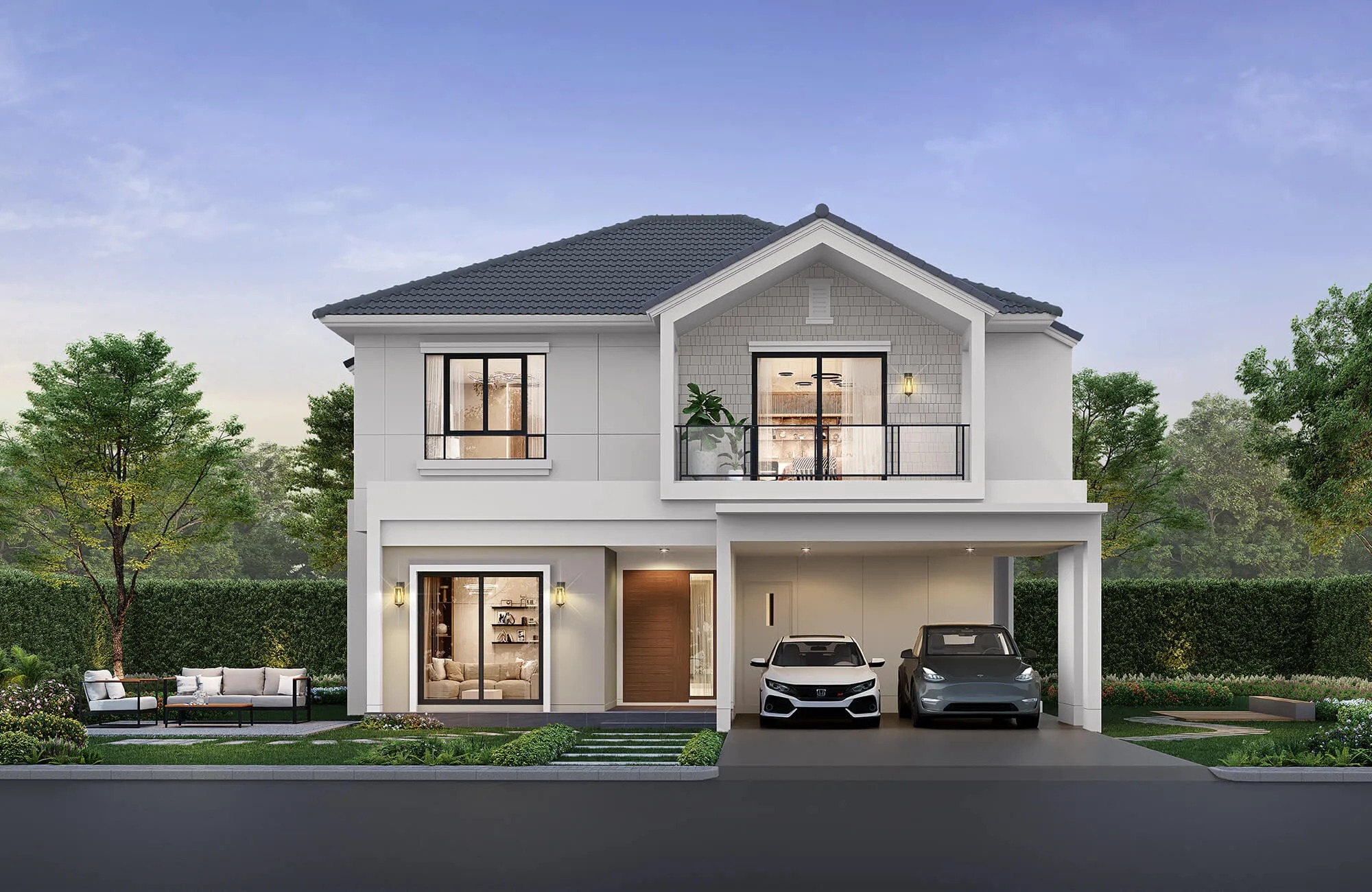 – ฟังก์ชัน 3 ห้องนอน / 3 ห้องน้ำ / 2 ที่จอดรถ