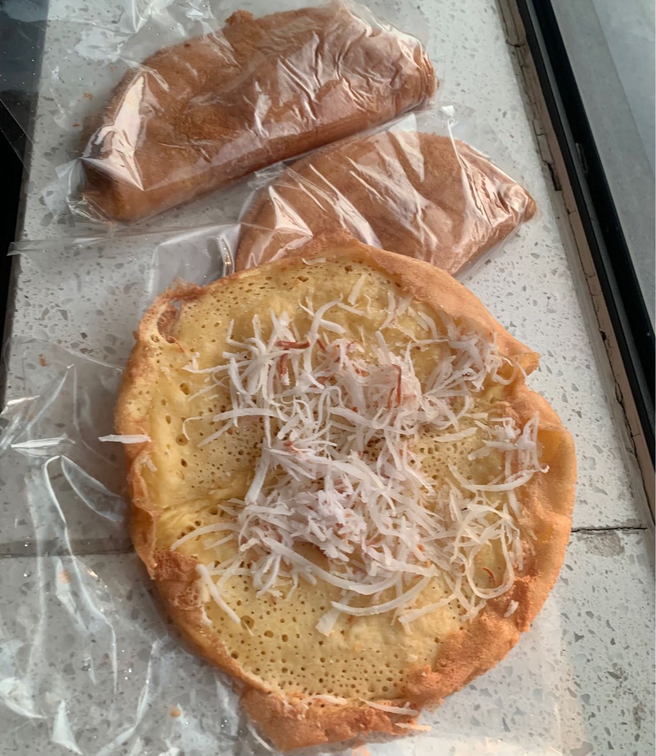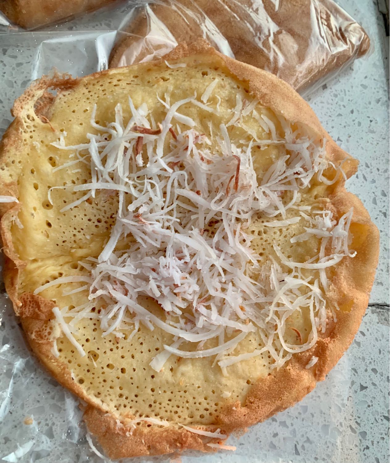 แป้ง: มีความเหนียวนุ่มและมีฟองอากาศข้างใน สูตรดั้งเดิมจะใช้วิธีหมักแป้งข้ามคืนเพื่อให้มีกลิ่นหอมและรสเปรี้ยวนิดๆ แต่ปัจจุบันมีสูตร "แป้งสด" ที่ทำง่ายและนุ่มนานแม้จะเย็นตัวลง