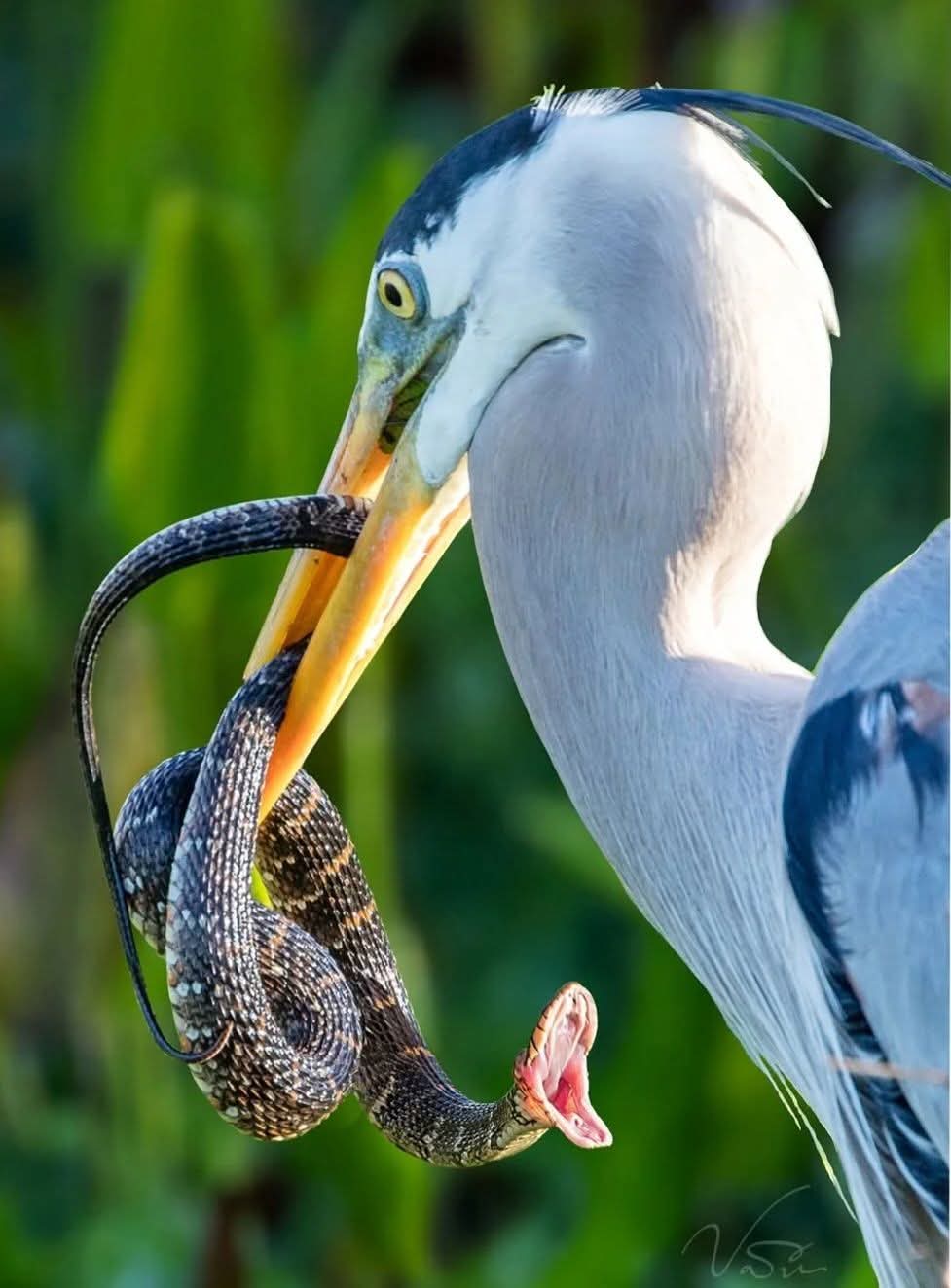 🦤ไม่ได้กินแค่ปลา แต่ยังกินกบ, สัตว์เลื้อยคลาน (งูในภาพ), หนู, และแม้แต่นกขนาดเล็ก