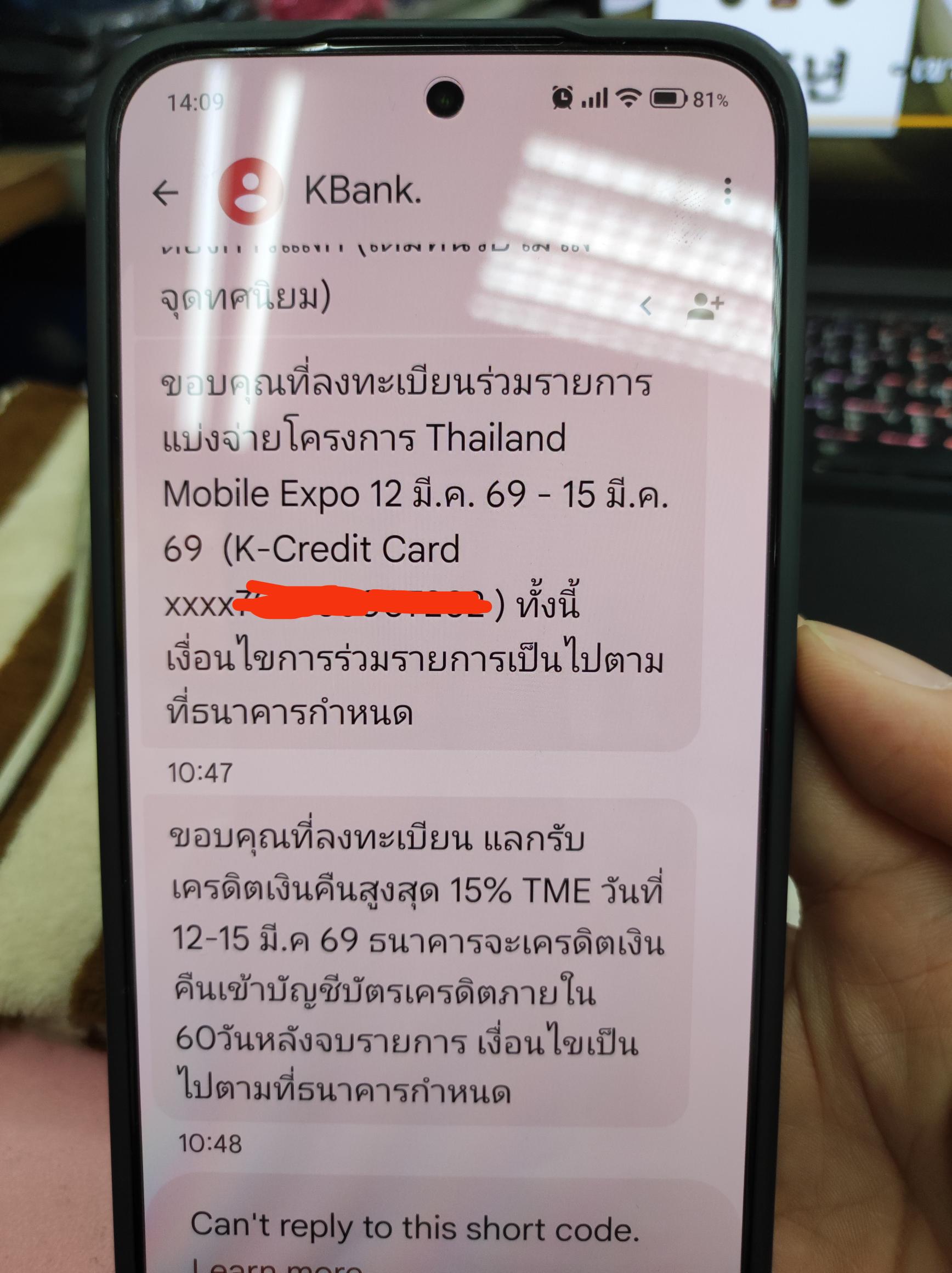 ปรกติ เวลาส่ง sms สมัครโปรบัตรเครดิต ใน งาน ก็จะเสีย 3 บาท ต่อครั้ง แต่นี้ยอดอะไร รับข้อความยืนยันจากธนาคาร ก็มาเรียกเก็บเงิน ข้อความละ 1 บาท โทรหา call center แจ้งว่า เราไปสมัครดูดวง ทำให้เวลามา sms ส่งมาหาเราก็จะโดนเรียกเก็บค่าบริการ แอปก็ห่วย เดียวค้างเดียวหลุด กดใช้สิทธิพิเศษ ถ้าหลุดหรือกดออก สิทธินั้นก็หายไปเลย เรียกดูย้อนหลังก็ไม่ได้ ตั้งแต่เหลือ 2ค่าย มีแต่ห่วยลง แต่ค่าบริการแพงขึ้น