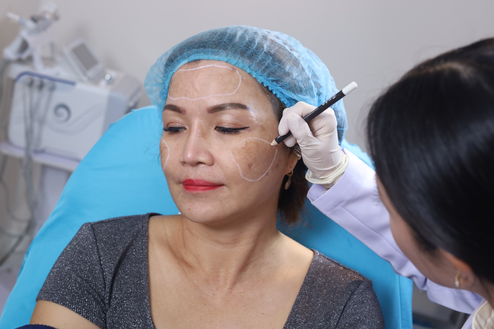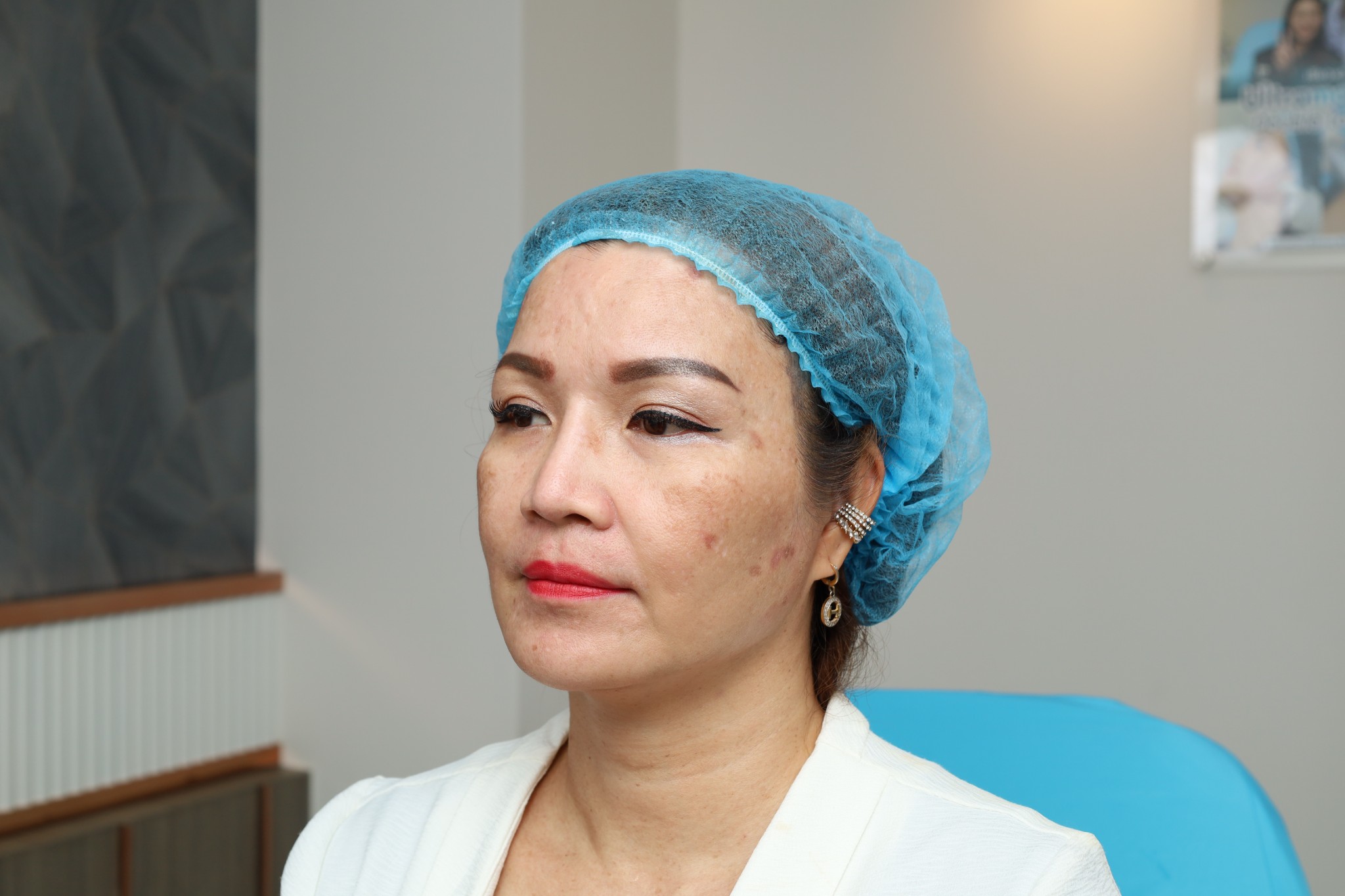 คุณหมอก็วินิจฉัยให้ถึงผลลัพธ์ เเละความเสียหายของผิวที่ทำเลเซอร์มาเเละก็เลยเเนะนำให้ทิพย์ ทำโปรเเกรมรักษาฝ้า