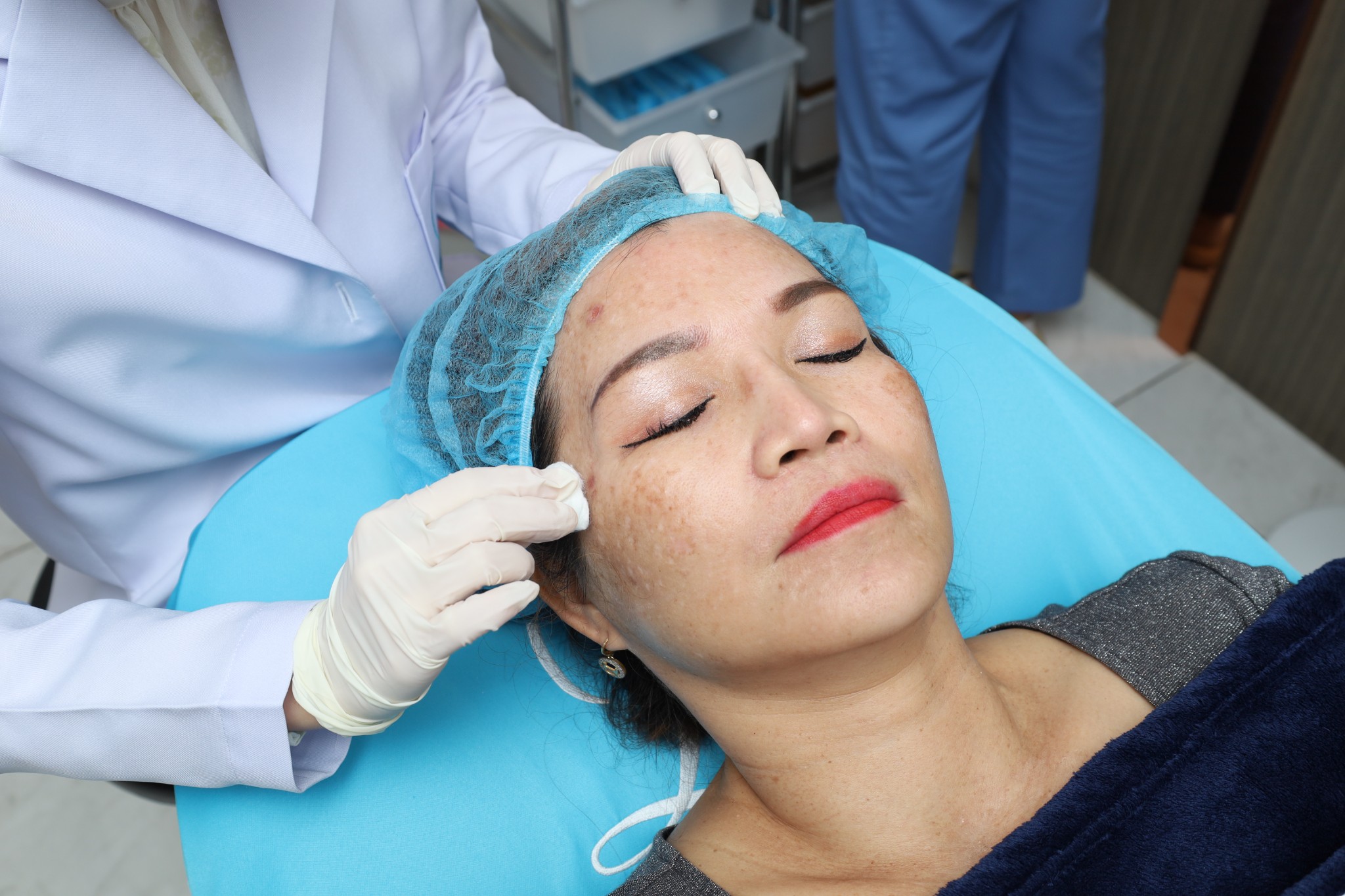คุณหมอก็วินิจฉัยให้ถึงผลลัพธ์ เเละความเสียหายของผิวที่ทำเลเซอร์มาเเละก็เลยเเนะนำให้ทิพย์ ทำโปรเเกรมรักษาฝ้า ESPT + Exodermal Human รักษาฝ้าเเบบไม่ใช้ความร้อน เเละเน้นที่การฟื้นฟูผิวเเละกำจัดเม็ดสี