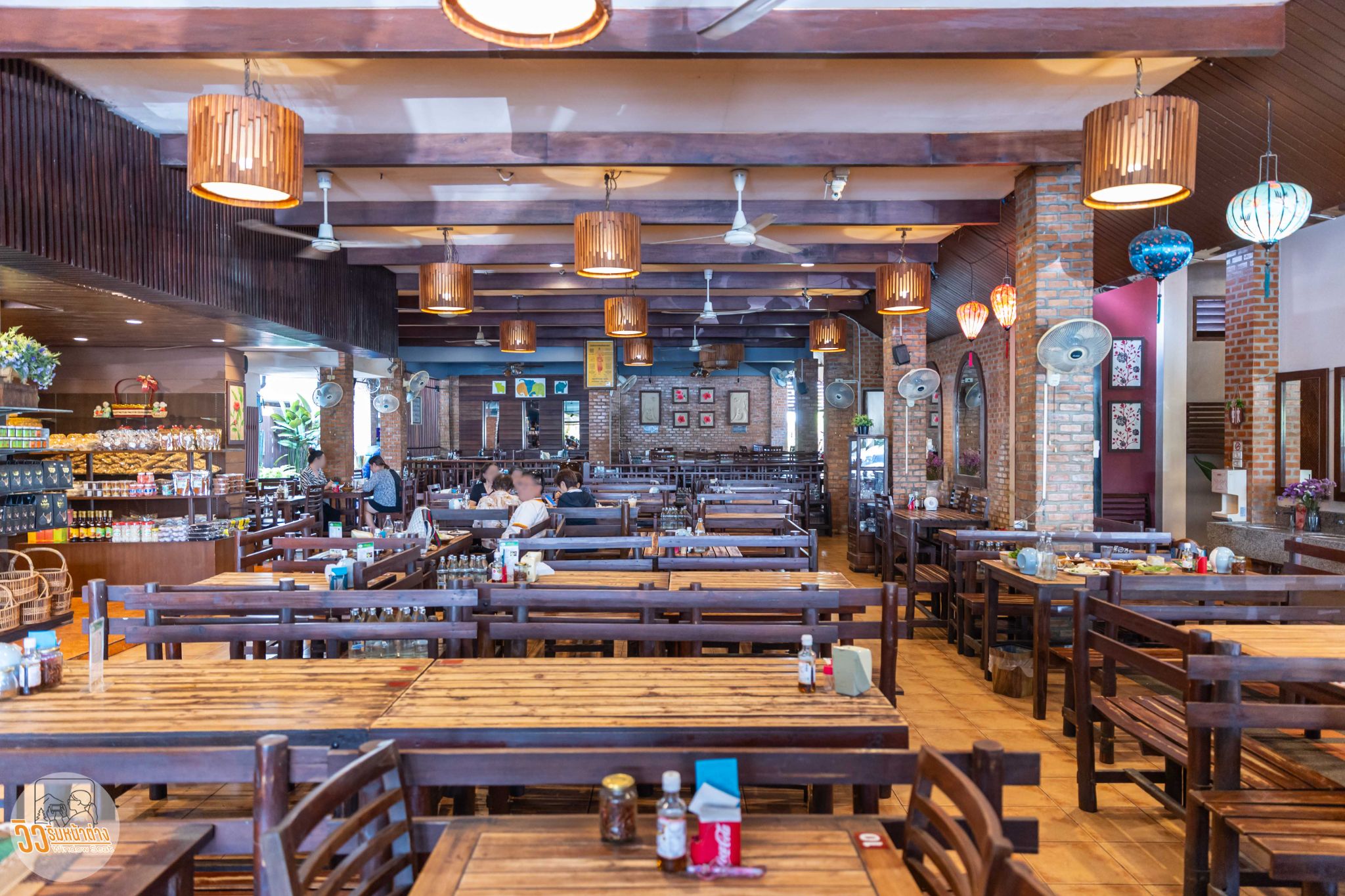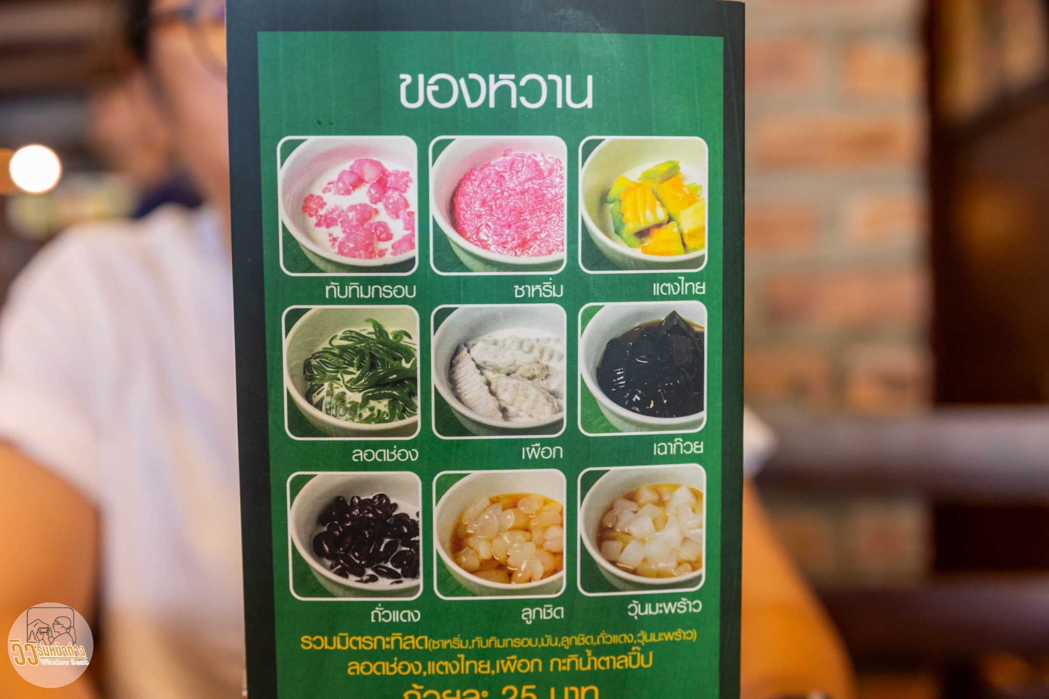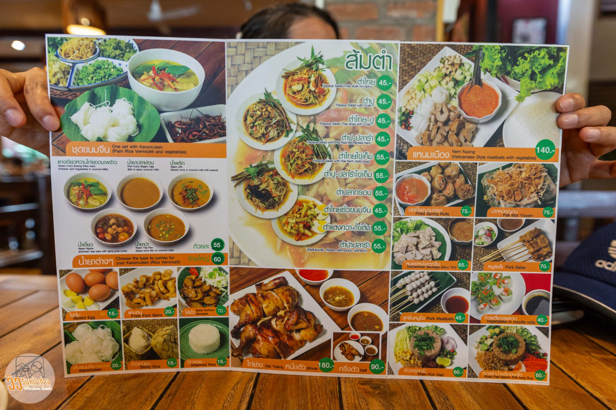 หน้าร้านดูไม่ใหญ่โตนักแต่ด้านในนี่ที่นั่งค่อนข้างเยอะเลย รายการอาหารมีให้เลือกหลายอย่างมากตั้งแต่ขนมจีน ส้มตำ ไปยันแหนมเนือง แต่เหมือนว่าอาหารขึ้นชื่อจะเป็นขนมจีน