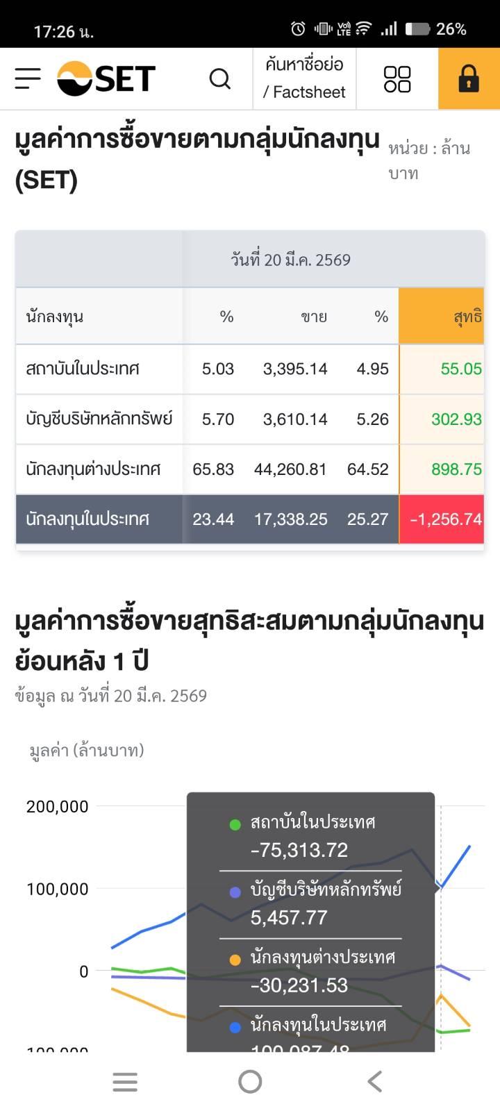 เว็บไซต์ตลาดหลักทรัพย์แห่งประเทศไทย รายงานสรุปการซื้อขายหลักทรัพย์ โดยแบ่ง ตามประเภทนักลงทุน ประจำวันที่ 24 ธันวาคม 2556 ดังนี้ กลุ่ม ปริมาณซื้อ % ปริมาณขาย % สุทธิ (ลบ.) (ลบ.) (ลบ.) นักลงทุนสถาบัน 1,