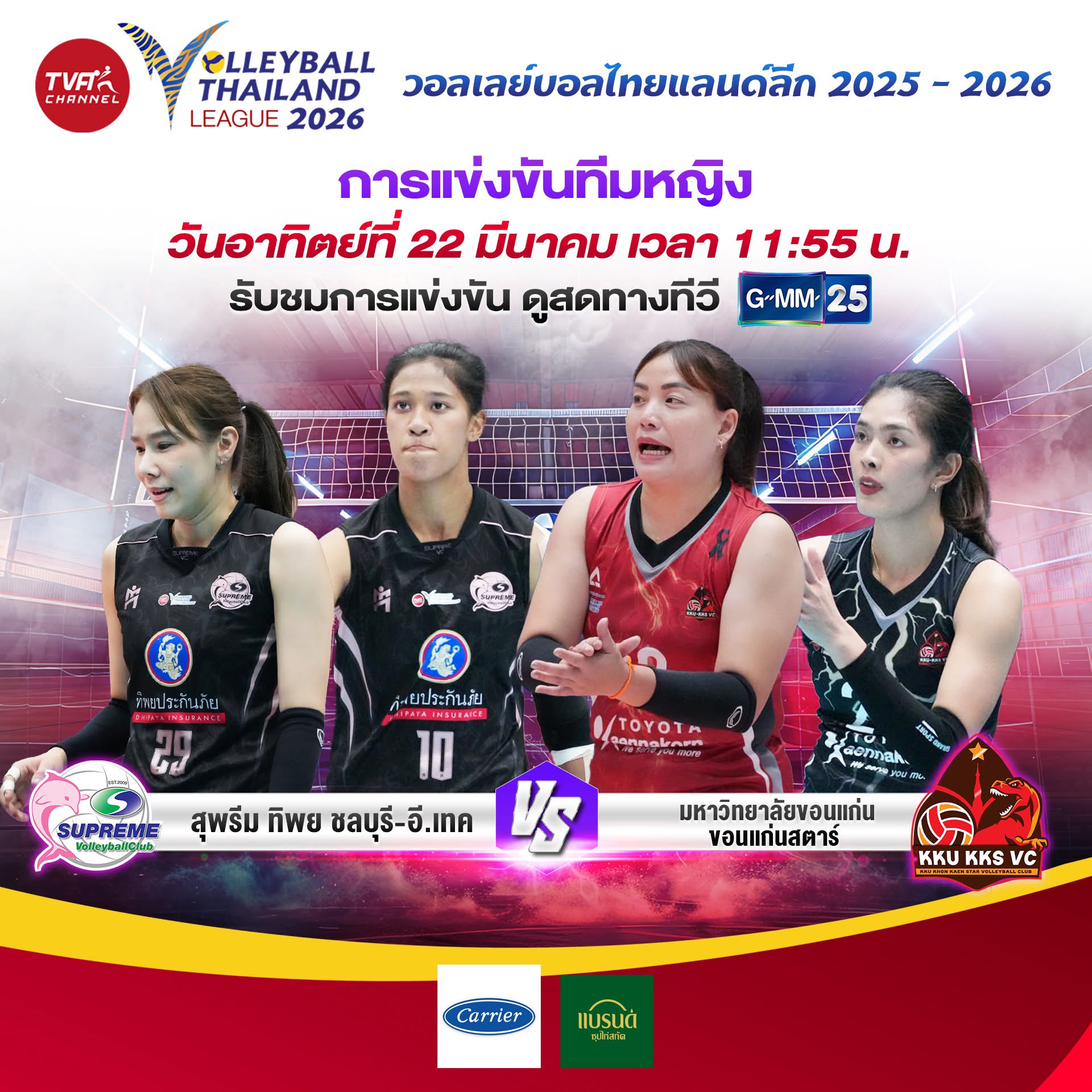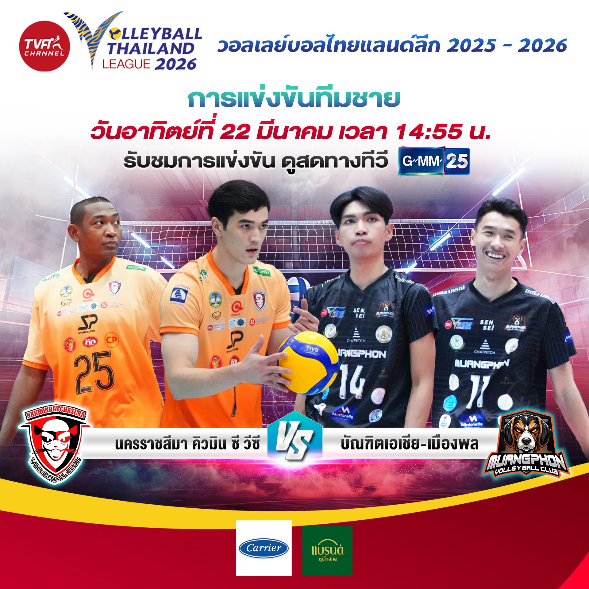 แฟนลูกยางไทยเตรียมตัวให้พร้อม 🇹🇭วันที่ 22 มีนาคม 2569 นี้มีแมตช์มันๆของวอลเลย์บอลไทยแลนด์ลีก 2026 ให้เชียร์กันแบบสดๆครับ ใครสายวอลเลย์หรือเชียร์ทีมในลีกอยู่ บอกเลยว่าไม่ควรพลาดแม้แต่แมตช์เดียว
