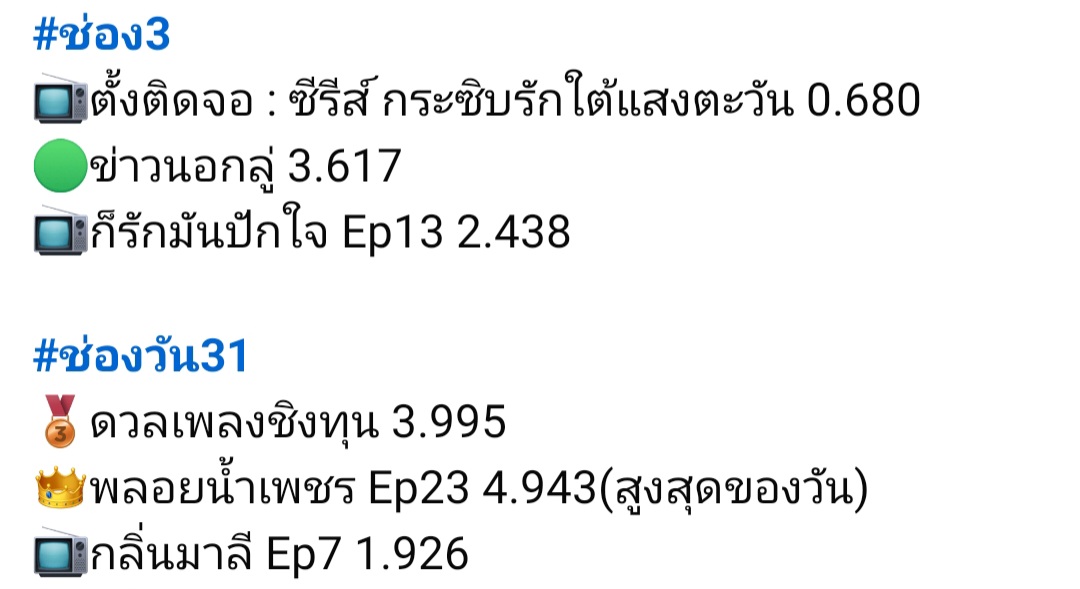 พลอยนํ้าเพชร = 5.407 (15+) New High ปิ่นอนงค์ = 2.786 (15+) Cr. Rating TV Thai ❤️