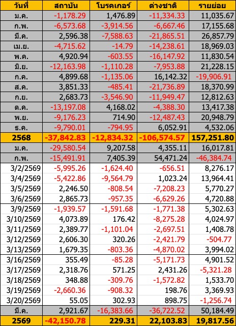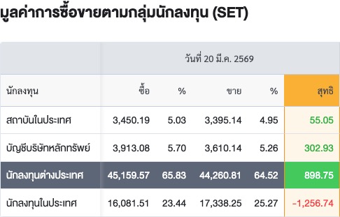 Sinthorn Summary 20/3/2569 : ต่างชาติซื้อสุทธิ 898.75 ลบ.