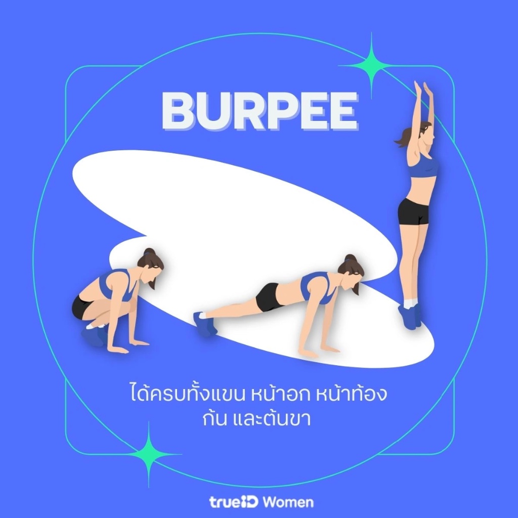 ท่าที่ทำแล้วจะรู้ว่าไขมันไม่ใช่เพื่อนเราอีกต่อไป ถ้าต้องเลือกแค่ท่าเดียวในชีวิต ผมให้ท่านี้เลยครับ เพราะมันรวมทุกอย่างไว้แล้ว ทั้งย่อ (Squat) แพลงก์ (Plank) และกระโดด (Jump) สามารถทำทีเดียว แล้วครบจบทั้งตัว โดยข้อดีที่รู้สึกหลังทำ แม้จะเหนื่อยมาก แต่เหงื่อออกแบบรู้สึกว่าได้เผาผลาญจริงครับ