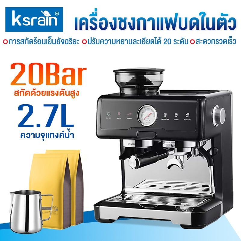 ☕🔥 Ksrain เครื่องชงกาแฟเอสเปรสโซ่ บดในตัว 20Bar 2.7L หม้อต้มคู่ ตอบโจทย์โฮมคาเฟ่ 🫘⚙️