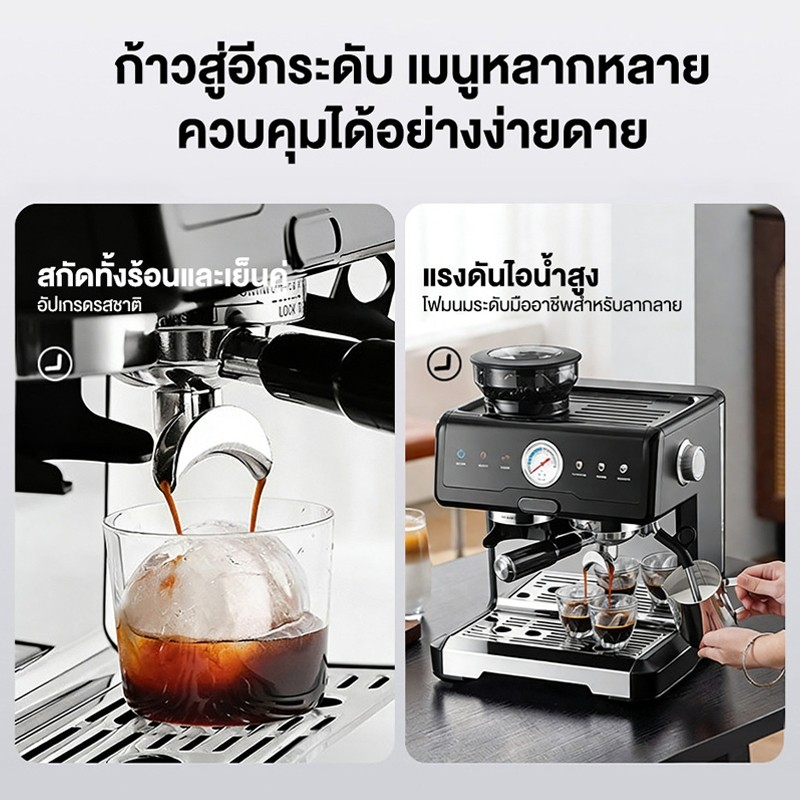 อีกจุดที่น่าสนใจคือด้ามชงขนาด 58 มม. และฟังก์ชัน Preinfusion ที่ช่วยให้รสชาติกลมขึ้น เหมาะกับคนที่จริงจังเรื่องคุณภาพกาแฟแต่ยังอยากได้เครื่องที่ใช้งานไม่ซับซ้อน สำหรับคนเริ่มต้น คนชอบชงลาเต้ คาปูชิโน หรือร้านเล็กที่ต้องการความคล่องตัว รุ่นนี้เป็น เครื่องชงกาแฟเอสเปรสโซ่ บดในตัว ที่รวมทั้งบด ชง และสตรีมนมไว้ในตัวเดียว ใช้งานทุกวันได้สะดวกและดูเป็นเครื่องที่ออกแบบมาเพื่อการใช้งานจริง 🔥