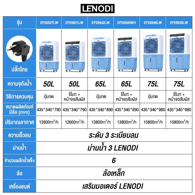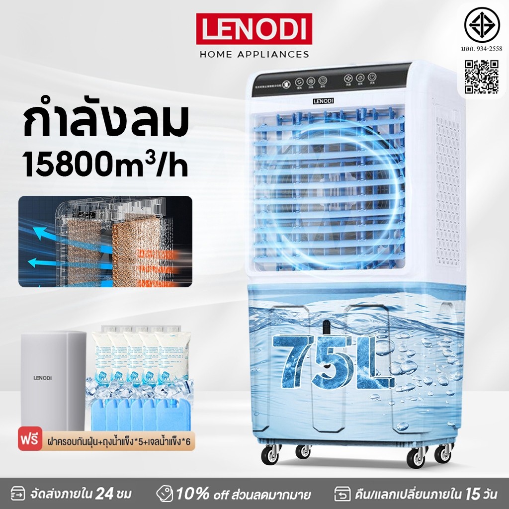 🌀🌬️ LENODI 75L พัดลมไอเย็น เคลื่อนที่ ขนาดใหญ่ ถังน้ำจุใจ ลมแรง ประหยัดไฟ ใช้ได้ทั้งบ้านและออฟฟิศ 🔥⚡