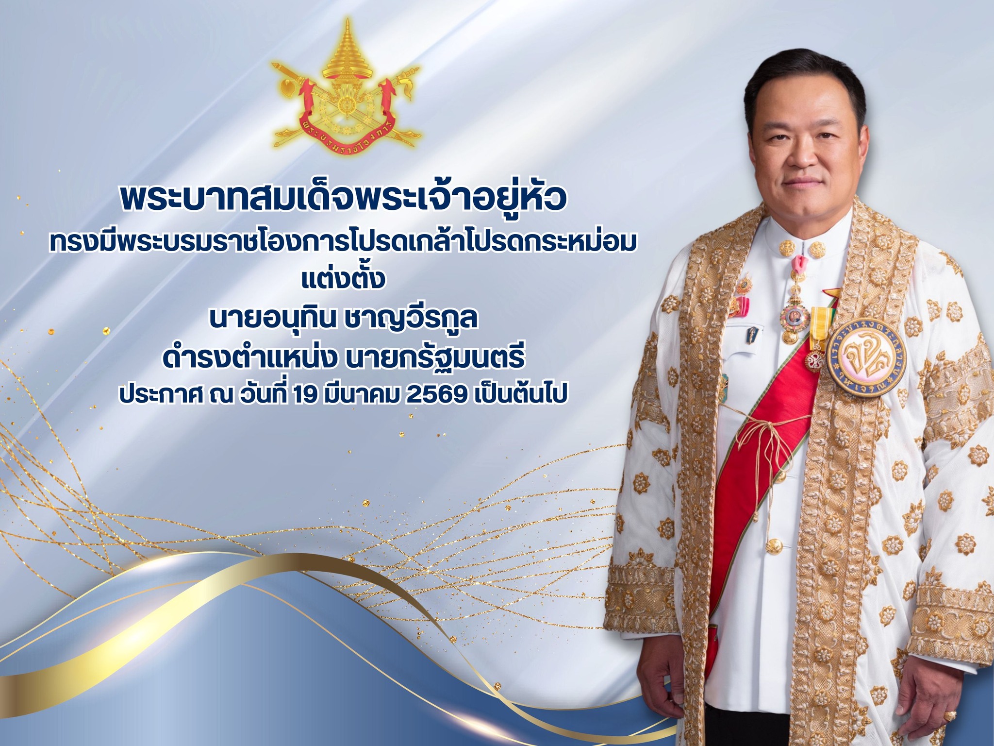 20 มี.ค.69 เวลา 14.30 น. นายอนุทิน ชาญวีรกูล นายกรัฐมนตรี แถลงภายหลังรับสนองพระบรมราชโองการ ให้คำมั่นสัญญาว่าจะใช้ความรู้ความสามารถ ประสบการณ์ ปฏิบัติหน้าที่นายกรัฐมนตรี เพื่อประโยชน์สุขของพี่น้องประชาชนชาวไทยอย่างเต็มกำลังความสามารถ และจะควบคุม กำกับดูแลให้รัฐบาล อันประกอบด้วยคณะรัฐมนตรี รวมถึงข้าราชการ เจ้าพนักงานของรัฐ ปฏิบัติหน้าที่ด้วยความซื่อสัตย์สุจริต คำนึงถึงประโยชน์ของประชาชนเป็นลำดับแรก และจะเปิดโอกาสให้ประชาชนมีส่วนร่วมในการทำงานของรัฐบาลเพื่อแก้ปัญหาและพัฒนาประเทศไทยอันเป็นที่รักยิ่ง การทำงานของภาครัฐจะต้องได้รับการตรวจสอบอย่างเข้มข้น จริงจังจากทุกภาคส่วน เพื่อการบริหารงานที่โปร่งใส โดยตั้งอยู่บนหลักนิติรัฐ นิติธรรม
