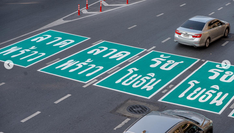 ส่วนตัวผมไม่เคยเห็นประเทศไหนบนโลกทำป้ายบอกทางแล้วทาสีบนท้องถนนแบบนี้เลยนะ นอกจากไทย อาจเป็นเพราะมันไม่ปลอดภัยตามหลักสากลเลยไม่เป็นที่นิยม