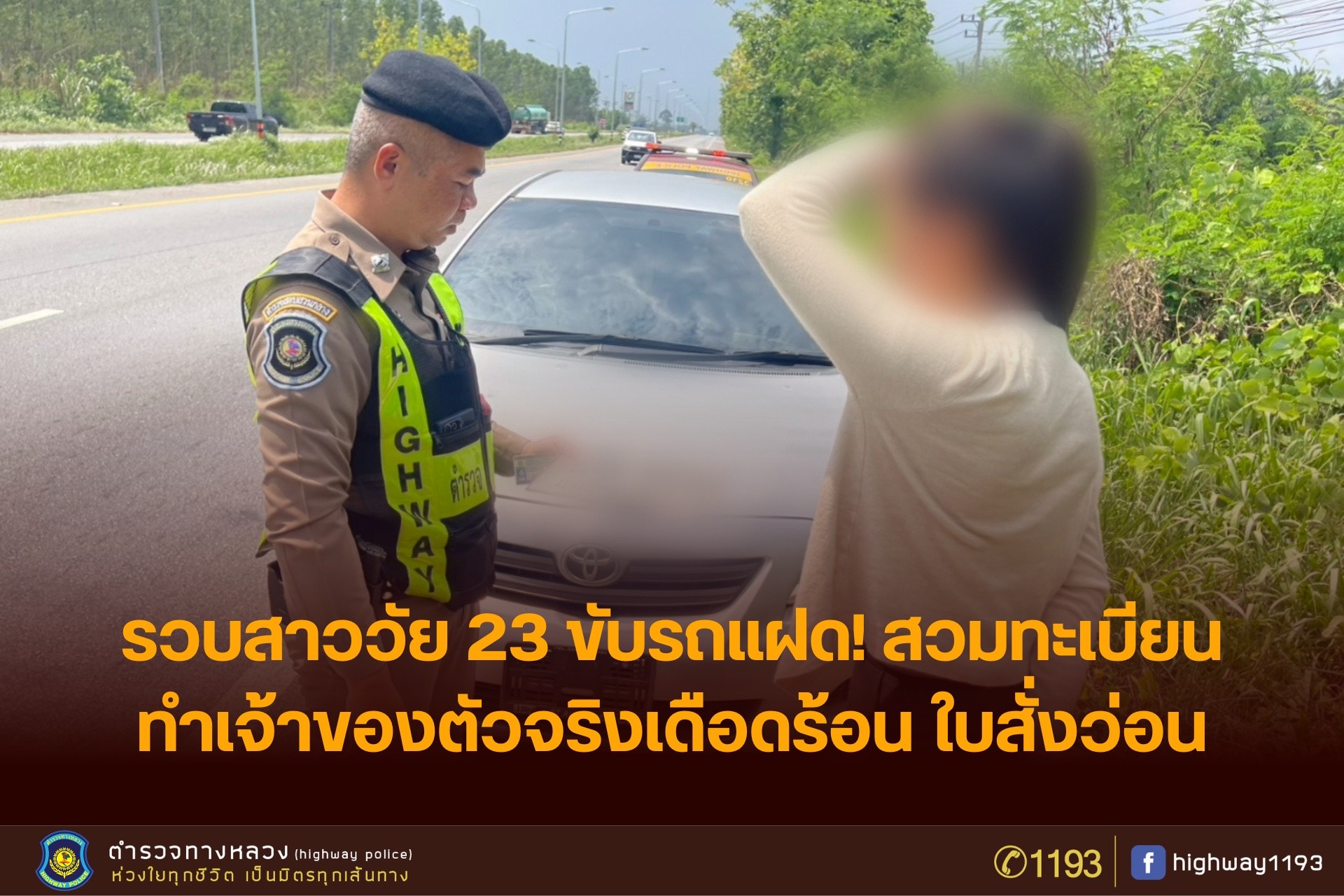 ตำรวจทางหลวงชลบุรี จับกุมหญิงอายุ 23 ปี พร้อมรถเก๋งที่ใช้ป้ายทะเบียนปลอม สวมเลขทะเบียนของรถคันอื่นในพื้นที่ หลังเจ้าของตัวจริงเข้าแจ้งความได้รับใบสั่งจำนวนมากทั้งที่ไม่ได้กระทำผิด