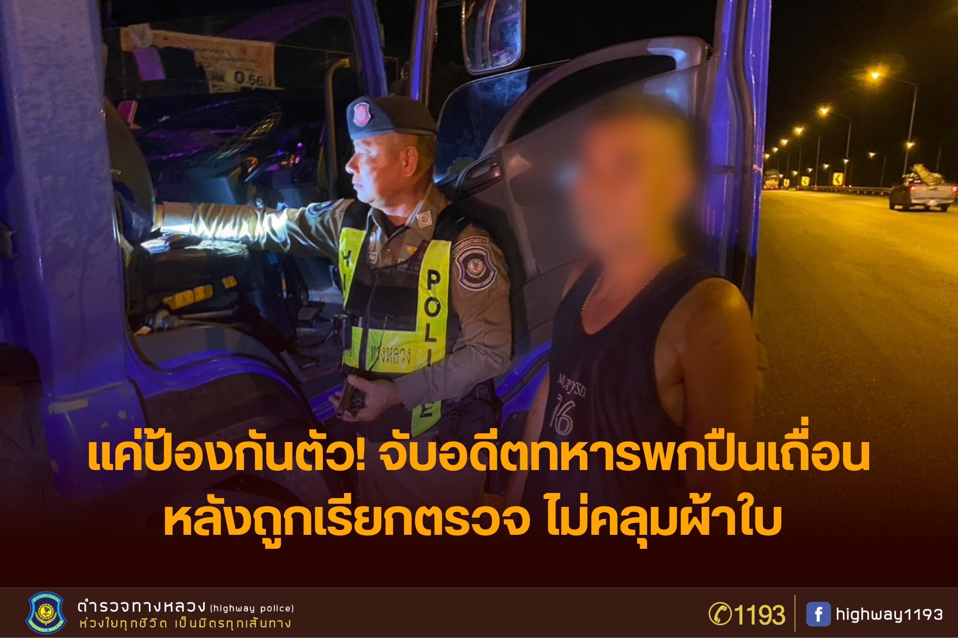 รวบโชเฟอร์รถบรรทุก ซุกปืน .38 ใต้เบาะคาถนนหลวง