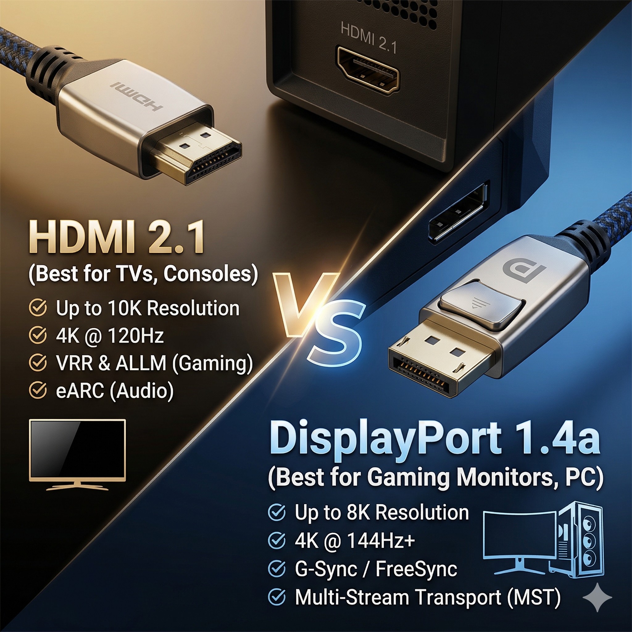 - คำตอบ: HDMI 2.1 คือคำตอบเดียว เพราะทีวีและคอนโซลถูกออกแบบมาคู่กับ HDMI 2.1 เพื่อให้ได้ 4K@120Hz พร้อมฟีเจอร์ VRR และ ALLM