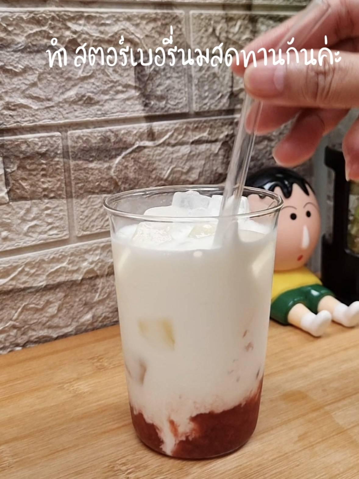 ทำชาเขียวสตอร์เบอรี่นมสดทานกันค่ะ