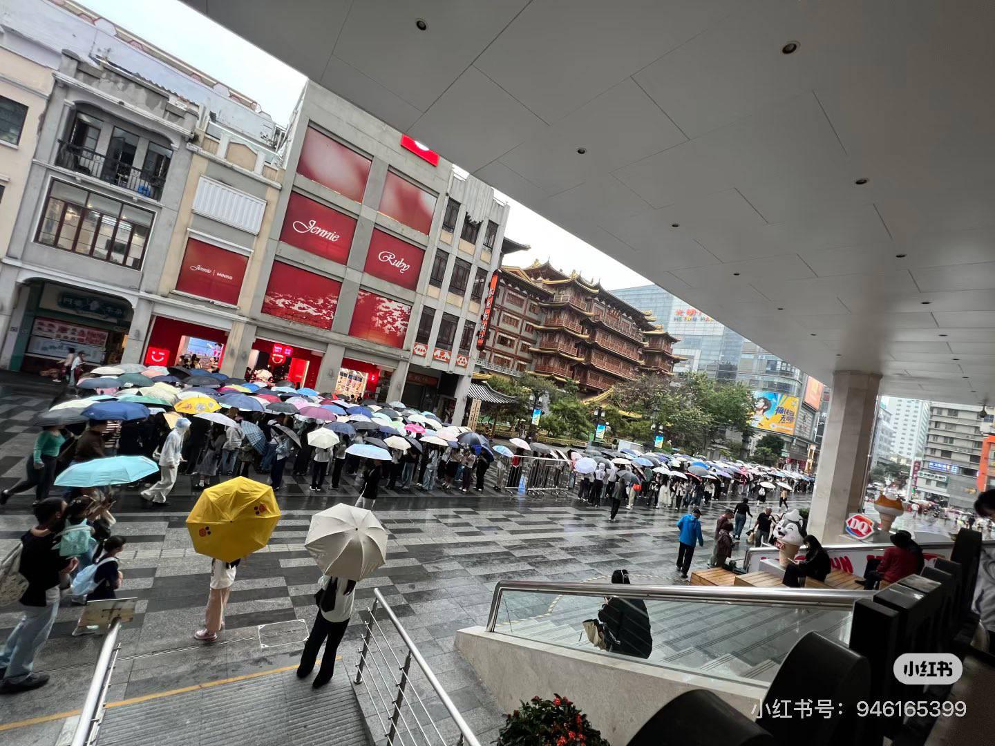 ด้านหน้าเจนนี่ x MINISO สาขาสองที่ปักกิ่งคนเยอะมาก ตรงนี้จะเป็น Flagship Store สาขาใหญ่ของจีนนะคะ เมื่อวานนี้คือที่เซี่ยงไฮ้นะ ซึ่งสาขานี้จะเปิดให้บริการวันนี้วันแรกตามเวลาปกติของ MINISO LAND เค้าจะเปิด 10 โมงเช้า แต่มีคนไปเข้าคิวรอจำนวนมากตั้งแต่ 8 โมงเช้าแล้ว แม้ว่าจะฝนตกก็ตาม