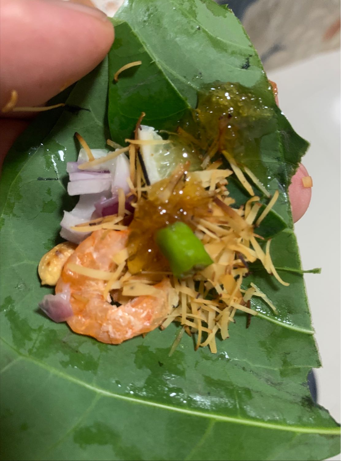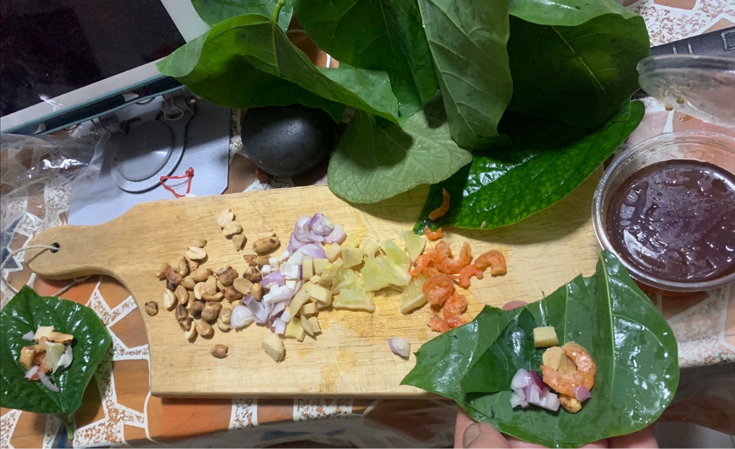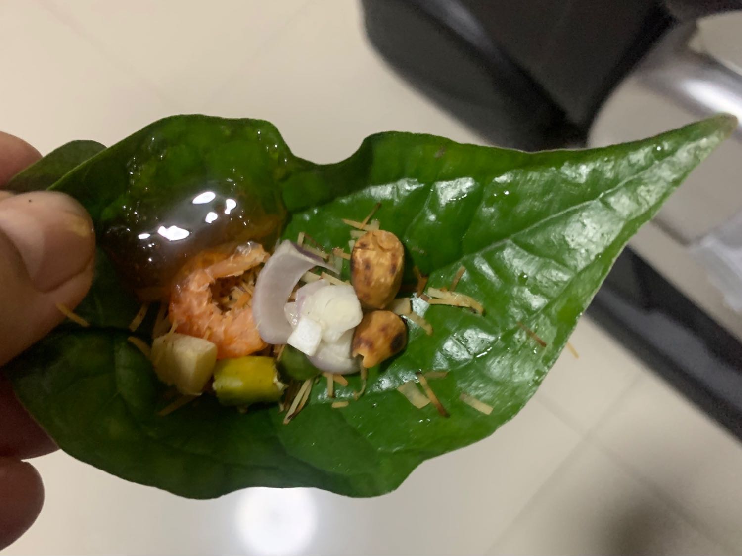 ลุงอ้วนก็ชอบกินเมี่ยงคำ ใบทองหลางใหญ่มีก้านแข็ง ก็ต้องเอาก้านออกก่อน