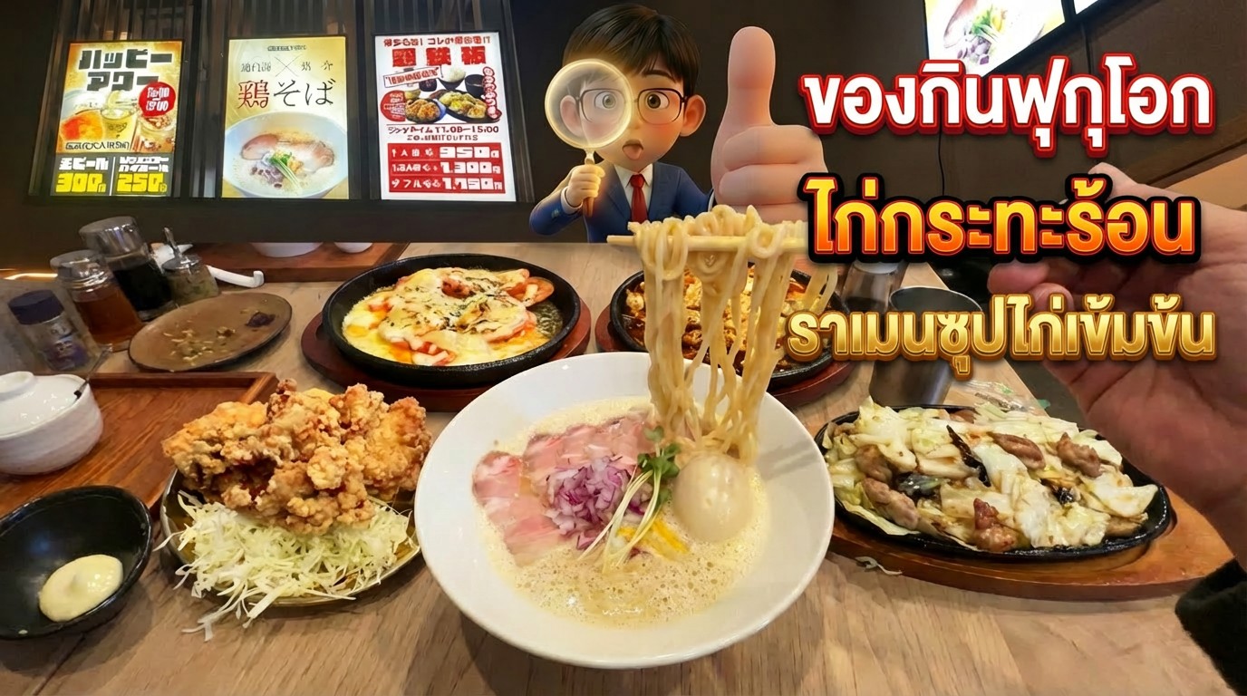 สวัสดีครับทุกคน! ผม Chewing Brother วันนี้จะพาทุกคนไปบุกร้านลับในฟุกุโอกะกันครับ ใครบอกว่ามาฟุกุโอกะต้องกินแต่ราเมนทงคตสึ (ซุปกระดูกหมู)? วันนี้ผมขอเสนอ "ราเมนซุปไก่เข้มข้น" และ "ไก่กระทะร้อน" ที่อร่อยจนต้องบอกต่อ!