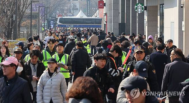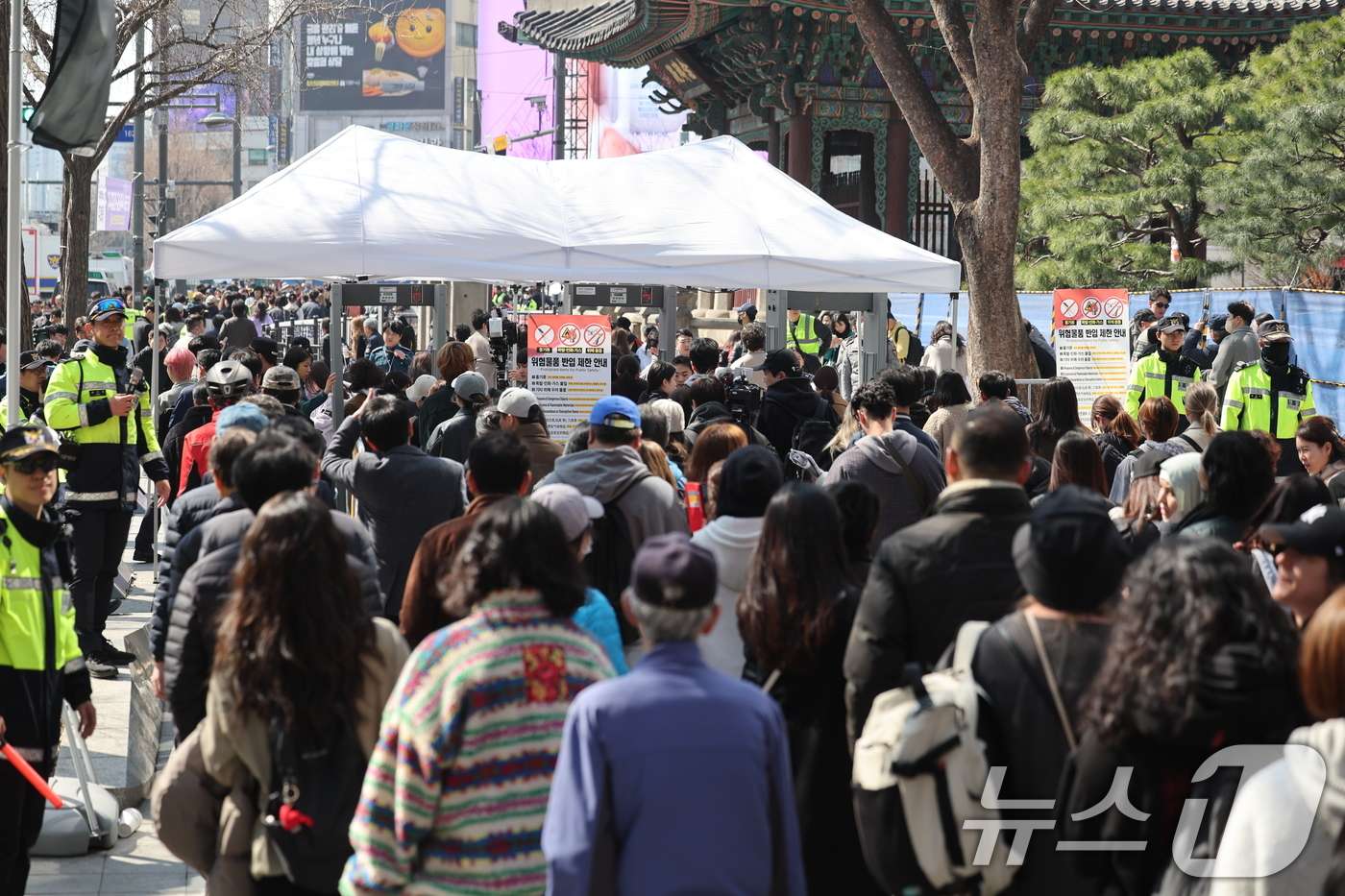 ภาพฝูงชนหนาแน่นที่ ควางฮวามุน