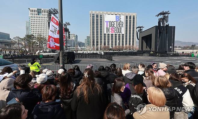 " วันเสาร์ที่ 21 มีนาคม จะมีการจัดแสดงคอนเสิร์ตของศิลปินผู้เป็นความภาคภูมิใจของเกาหลีใต้ BTS ณ จัตุรัสกวางฮวามุน กรุงโซล เราคาดหวังว่าจะเป็นช่วงเวลาที่มีความหมาย ที่จะได้ร่วมแบ่งปันมรดกทางวัฒนธรร