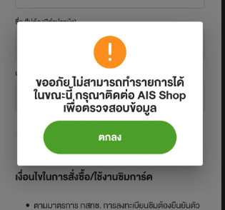 สั่งซื้อ ซิม ออนไลน์ของ AIS ไม่ได้