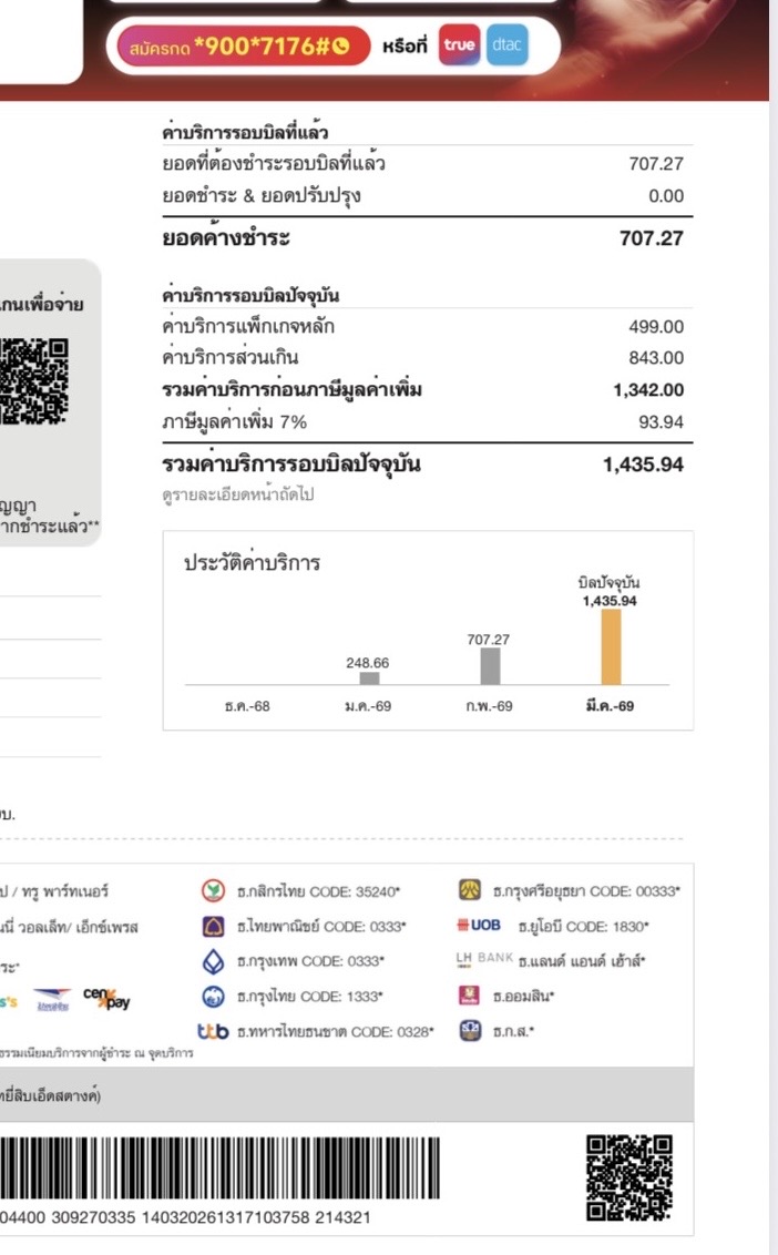โดนค่าใช้บริการส่วนเกินจาก True Corporation พุ่ง 2,000+ ภายในไม่กี่วัน แบบนี้ปกติไหมคะ?