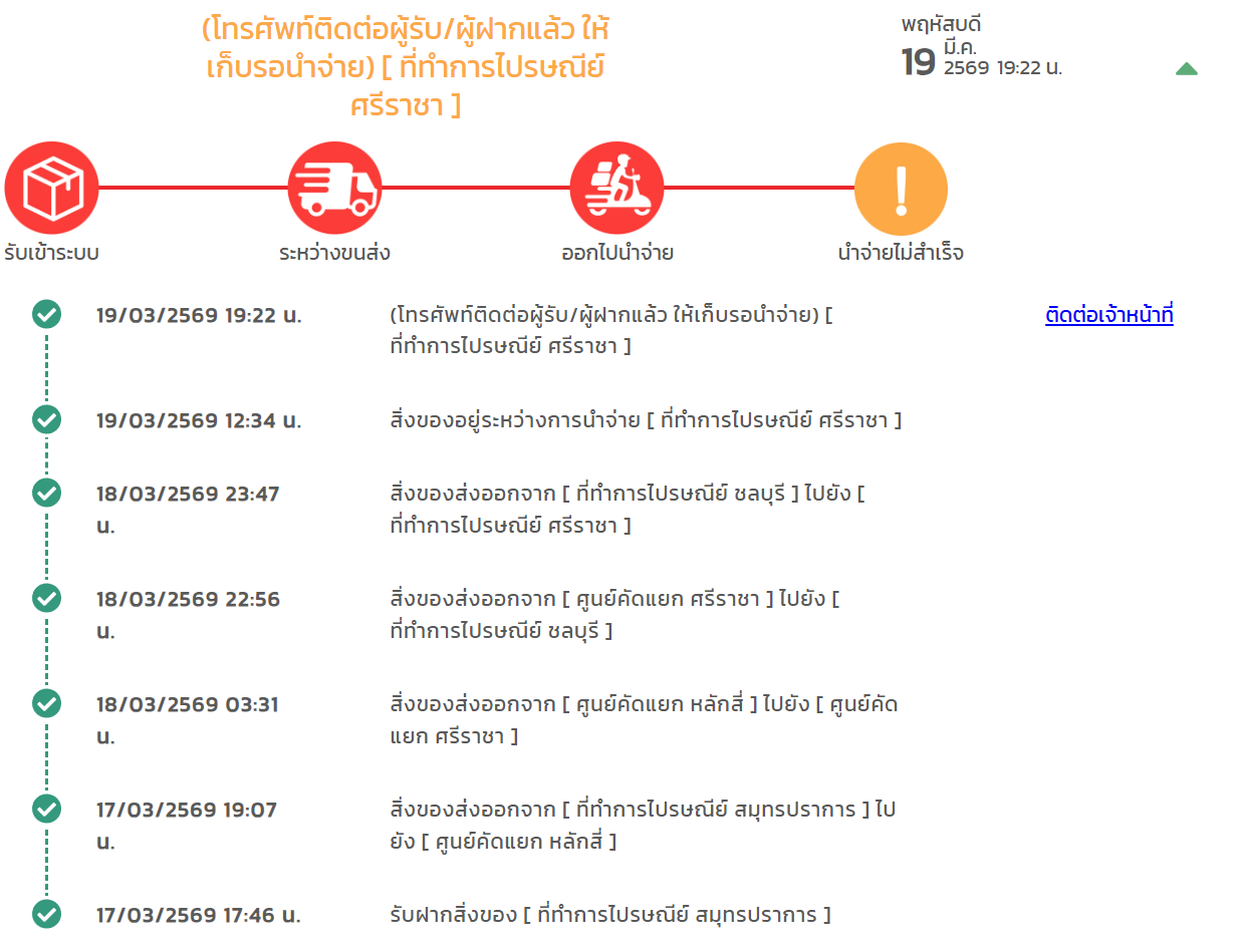 ไปรษณีย์ สถานะขึ้นแบบนี้ ต้องไปรับเองใช่มั้ยครับ