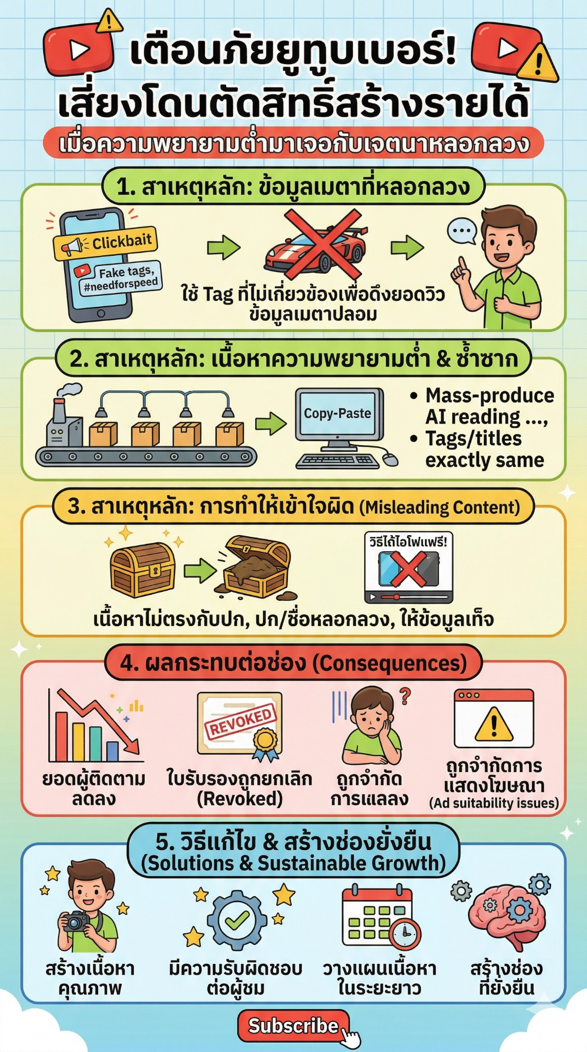 เตือนภัย! ระวังโดนตัดสิทธิ์สร้างรายได้ ถ้ายังทำเนื้อหาแบบ 'มักง่าย' และ 'หลอกลวง(แม้ไม่ตั้งใจหรือไม่รู้)'