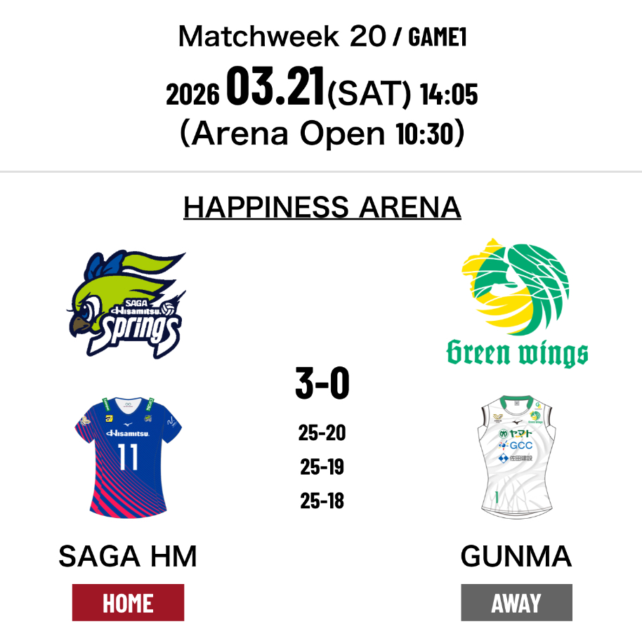 5.SAGA Hisamitsu Spings 3-0 Gunma Bank Green Wings (25-20 25-19 25-18)