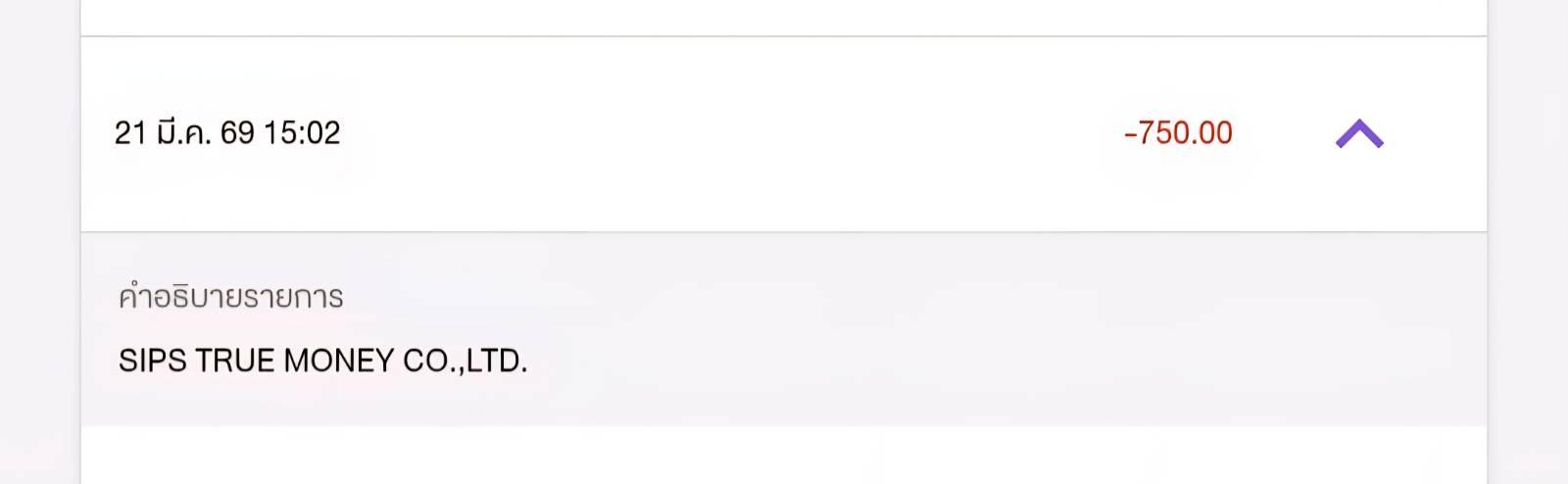 ขึ้นถอนเงิน SIPS TRUE MONEY CO.,LTD ไป 179บาท โดยไม่มีแจ้งเตือนใดๆ ผูกแอพ scb กับ truemoney แต่ก็ปิด "รายการชำระอัตโนมัติ" ไปดูในประวัติก็ไม่มี แล้วมั