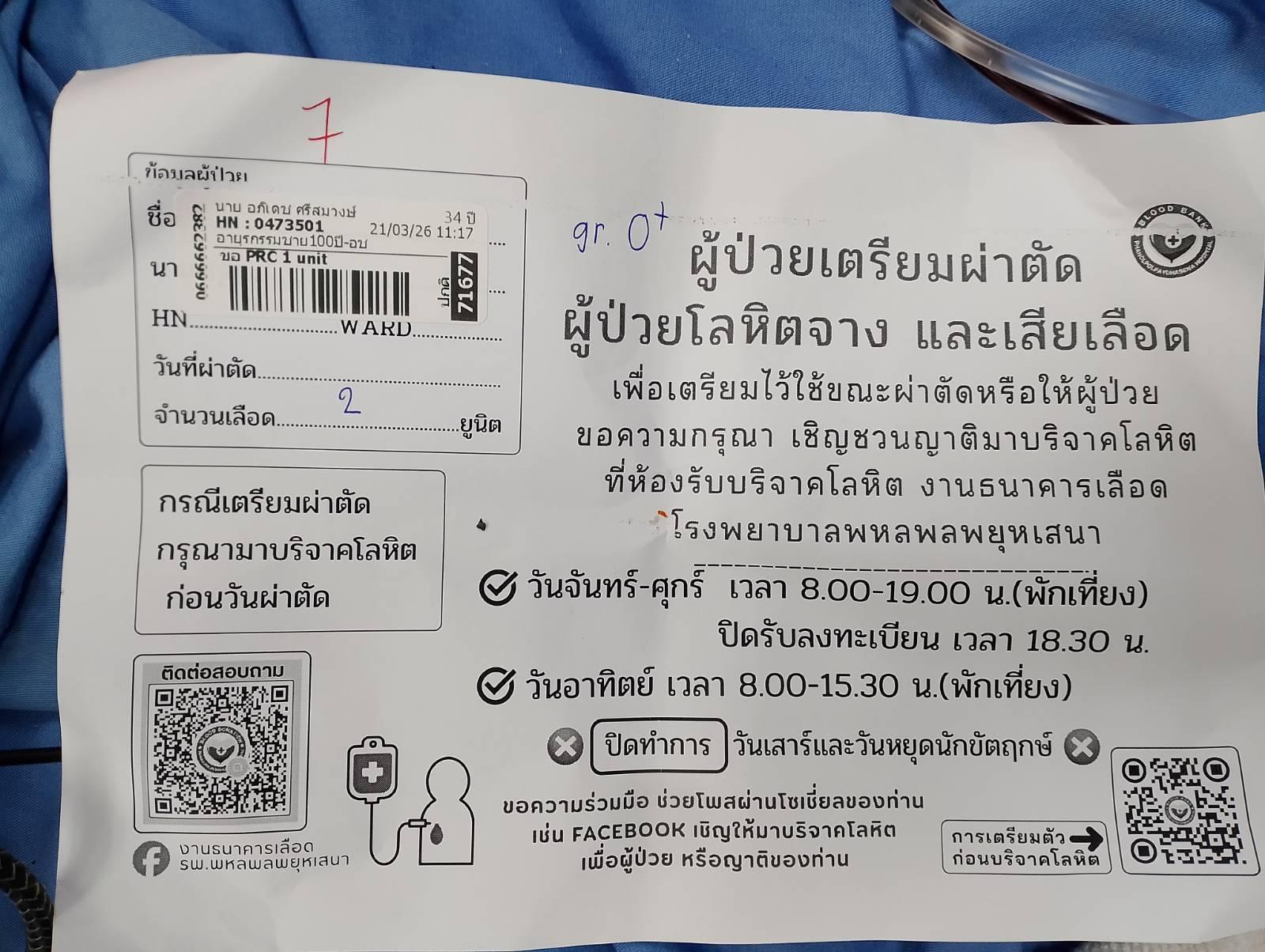 หาเลือด เลือดกรุ๊ปโอ negative ด่วนค่ะ