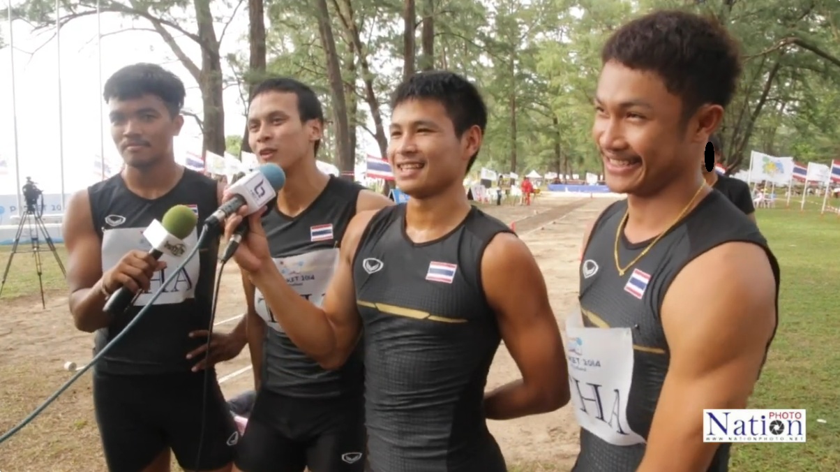 ทีมวิ่งผลัดไทยให้สัมภาษณ์ หลังจากคว้าเหรียญทองมาได้