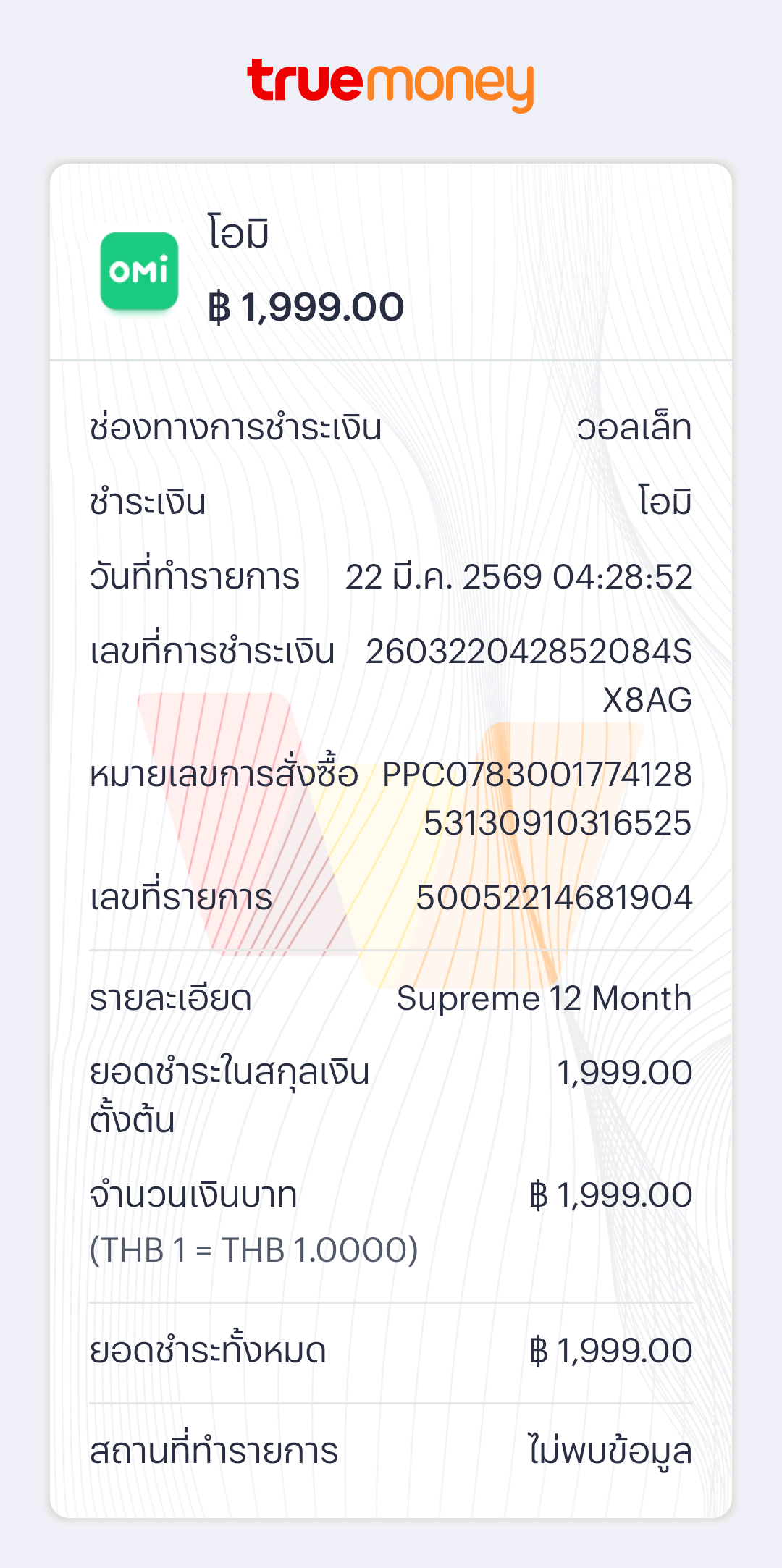 หลังจากชำระเงินผ่านช่องทาง True money Wallet แล้ว หลังจากนั้นถูกหักเงินไปอีก
