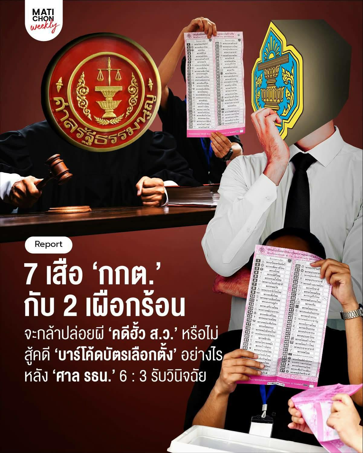 7 เสือ ‘กกต.’ กับ 2 เผือกร้อน จะกล้าปล่อยผี ‘คดีฮั้ว ส.ว’ หรือไม่ สู้คดี ‘บาร์โค้ดบัตรเลือกตั้ง’ อย่างไร หลัง ‘ศาล รธน.’ 6 : 3 รับวินิจฉัย