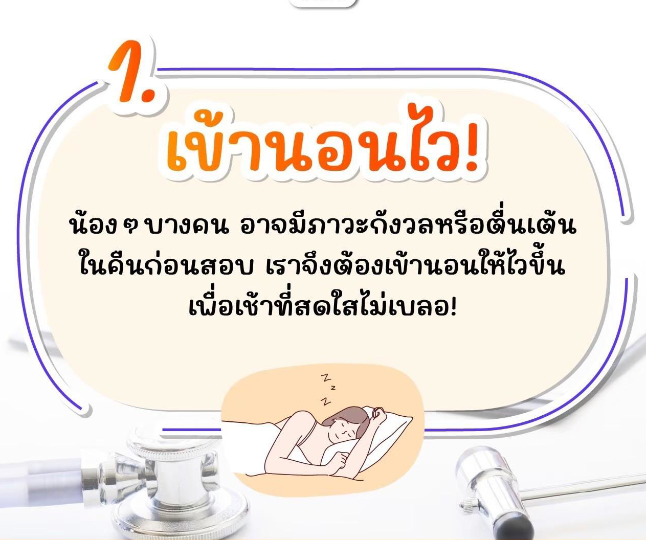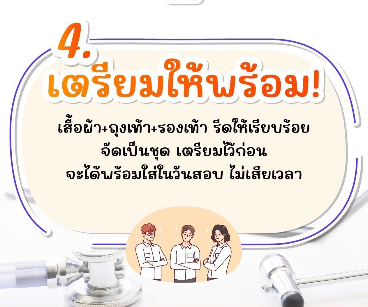 เตรียมชุดสอบ รีดให้เรียบร้อย จัดวางไว้เป็นชุดเดียว จะได้ไม่เสียเวลาหาตอนเช้าให้หงุดหงิด