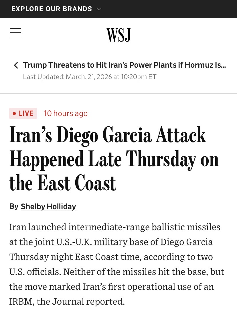 สำนักข่าว The Wall Street Journal ปล่อยข่าวลวง อิหร่านพยายามโจมตีฐานทัพร่วมอังกฤษ-อเมริกาที่ดิเอโก การ์เซีย