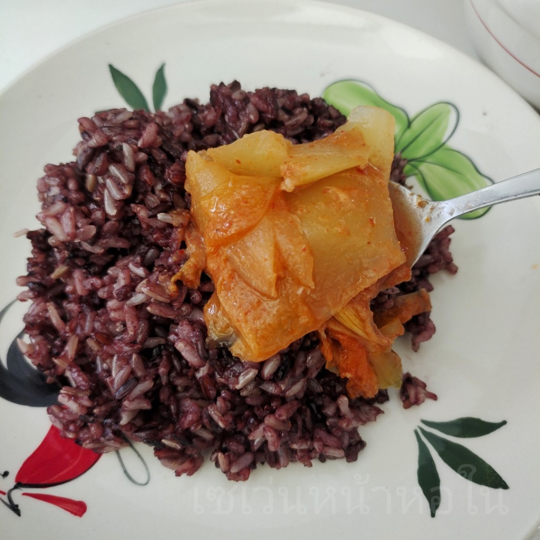 รอบนี้ตอนหุงลดปริมาณน้ำลง 1 ถ้วย (หุ้งข้าว3ถ้วย ใส่น้ำเปล่า 5 ถ้วย)