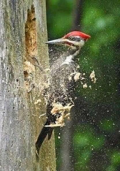 💥ภาพจังหวะที่น่าทึ่งมากของ "นกหัวขวาน" ที่กำลังเจาะไม้ด้วยความเร็วสูง