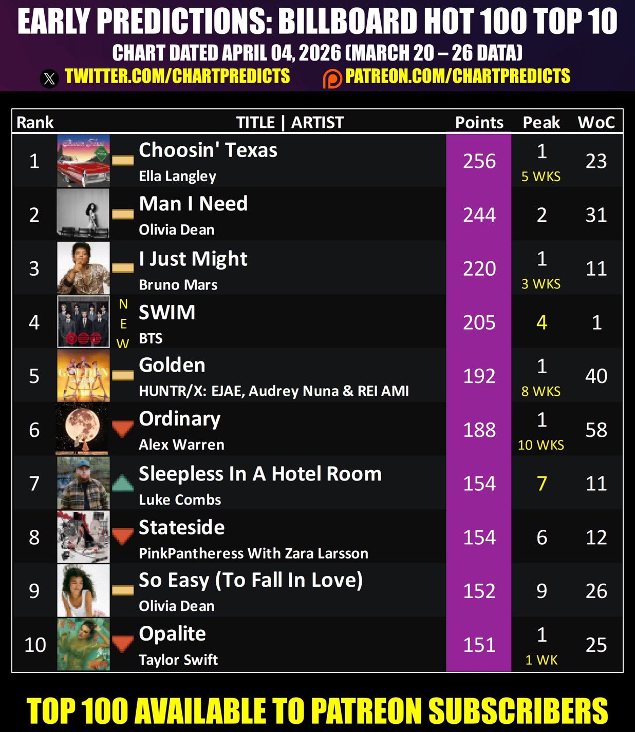 @ChartPredicts มีการคาดการณ์ว่าเพลงทั้งหมดจากอัลบั้ม ARIRANG จะติดชาร์ต Hot 100