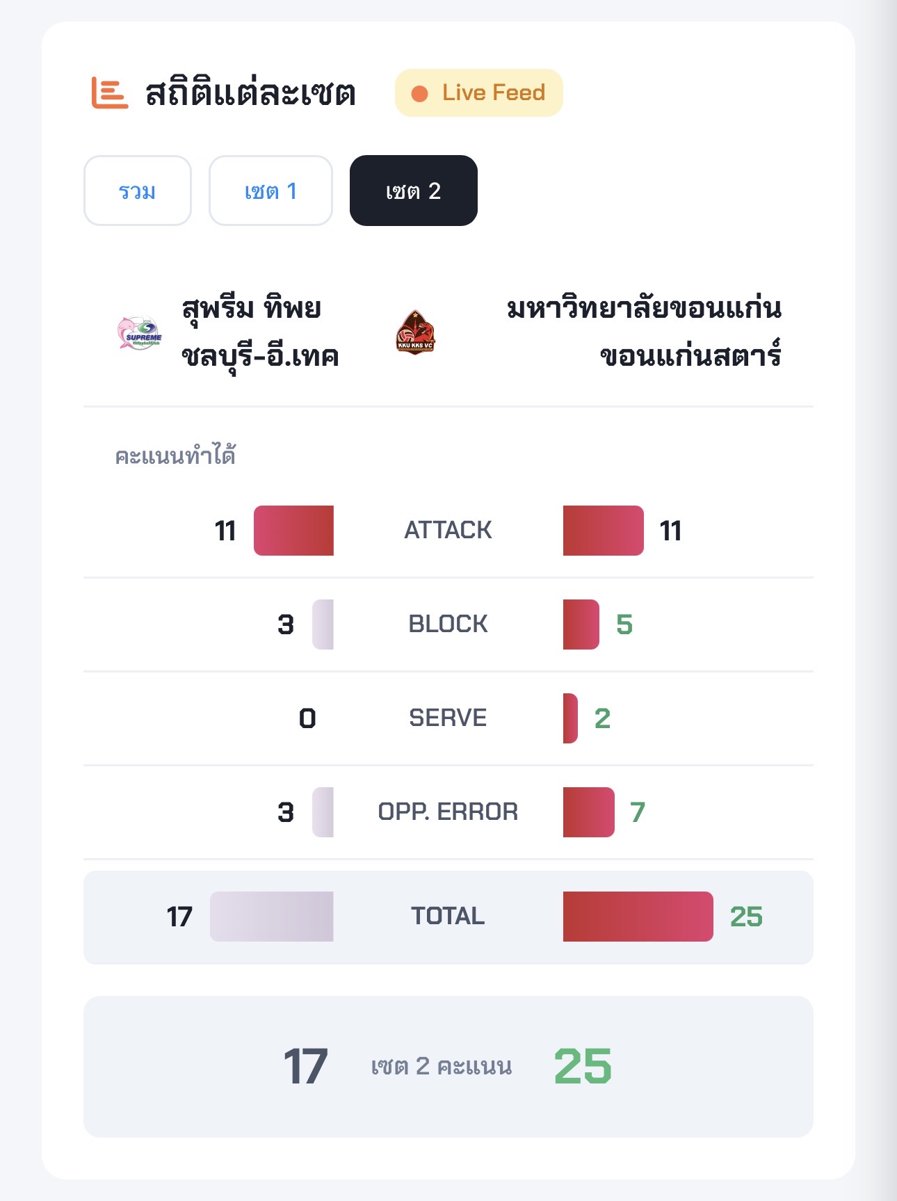เพิ่งจบเซตสอง ขอนแก่นเอาคืน 25-17