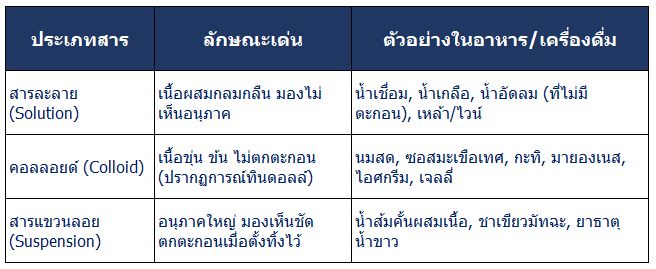 แยกประเภทอาหาร และสิ่งที่ต้องระวัง 'คอลลอยด์-แขวนลอย-สารละลาย' จำกันได้ไหม เราเคยเรียนกันมา