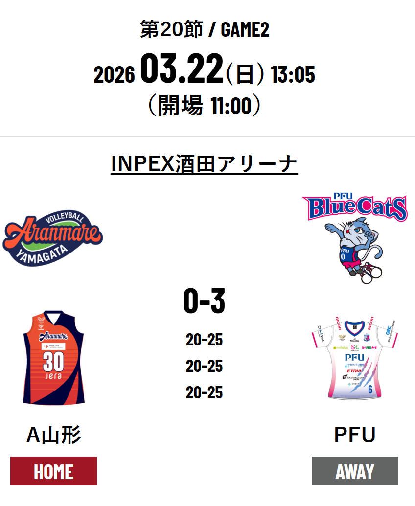 Aranmare Yamagaya 0 - 3 PFU Bluecats Ishikawa Kahoku
