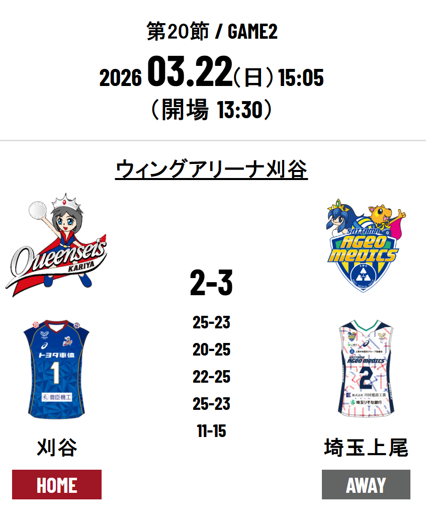 Queenseis Kariya 2 - 3 Saitama Ageo Medics