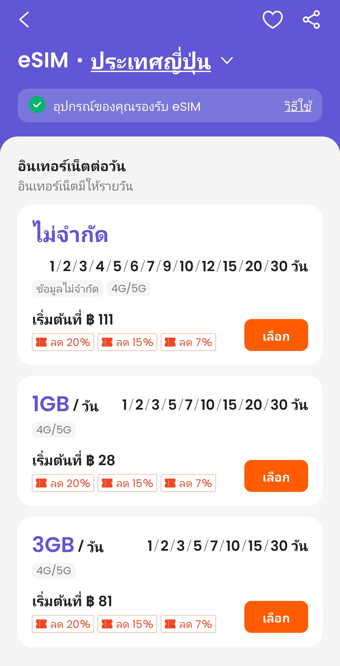1. เลือกแพ็คเกจ eSIM ญี่ปุ่น