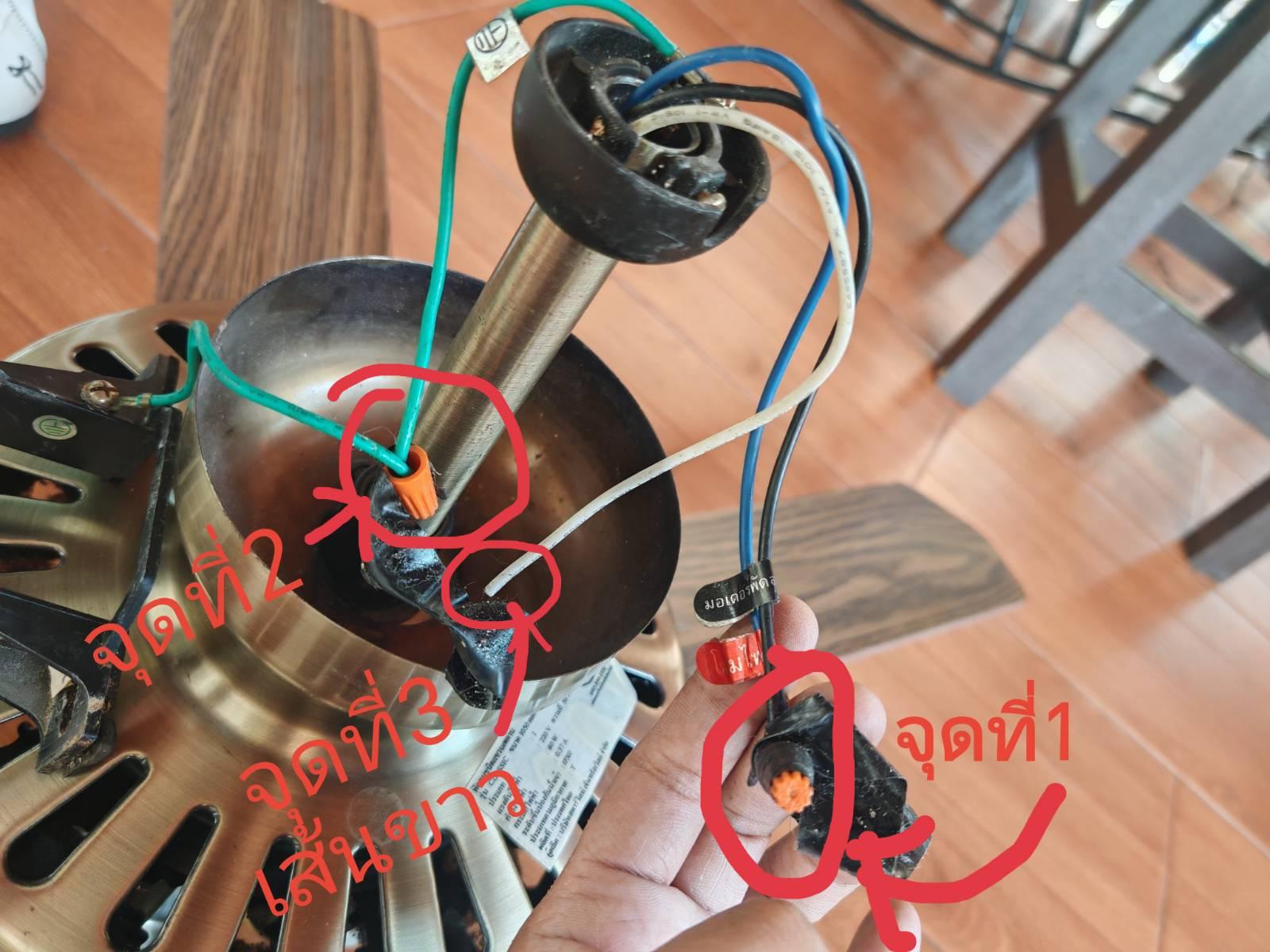 ซื้อพัดลมเพดานโคมไฟมือสองมา สงสัยต่อจั้มไฟเข้ากับไฟเพดานบ้านเยังไงครับ