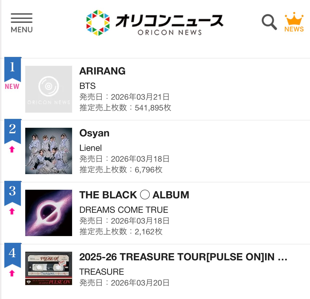 BTS 'ARIRANG' ทำลายสถิติอัลบั้มเกาหลีที่มียอดขายวันแรกสูงสุดในประวัติศาสตร์บนชาร์ต Oricon ประเทศญี่ปุ่น (541k ชุด)