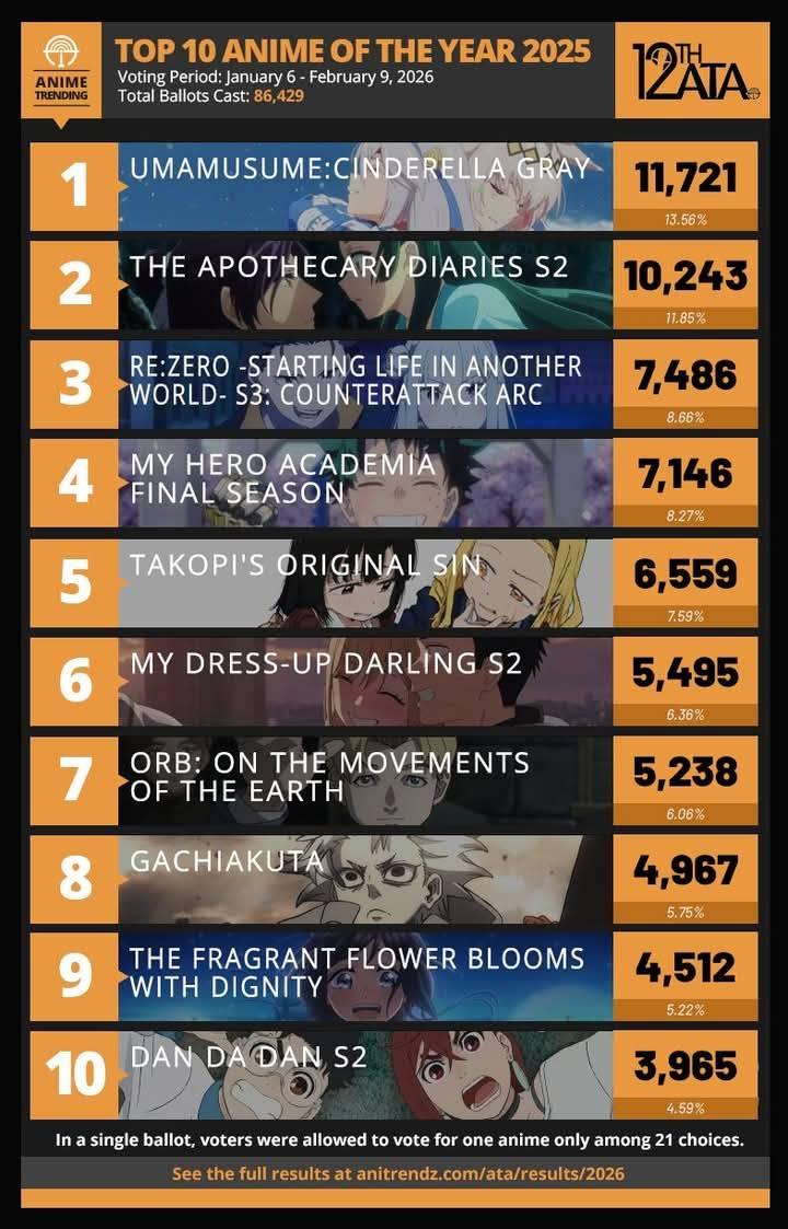 ผลอนิเมะประจำปี2568 มาแล้วค่ะ