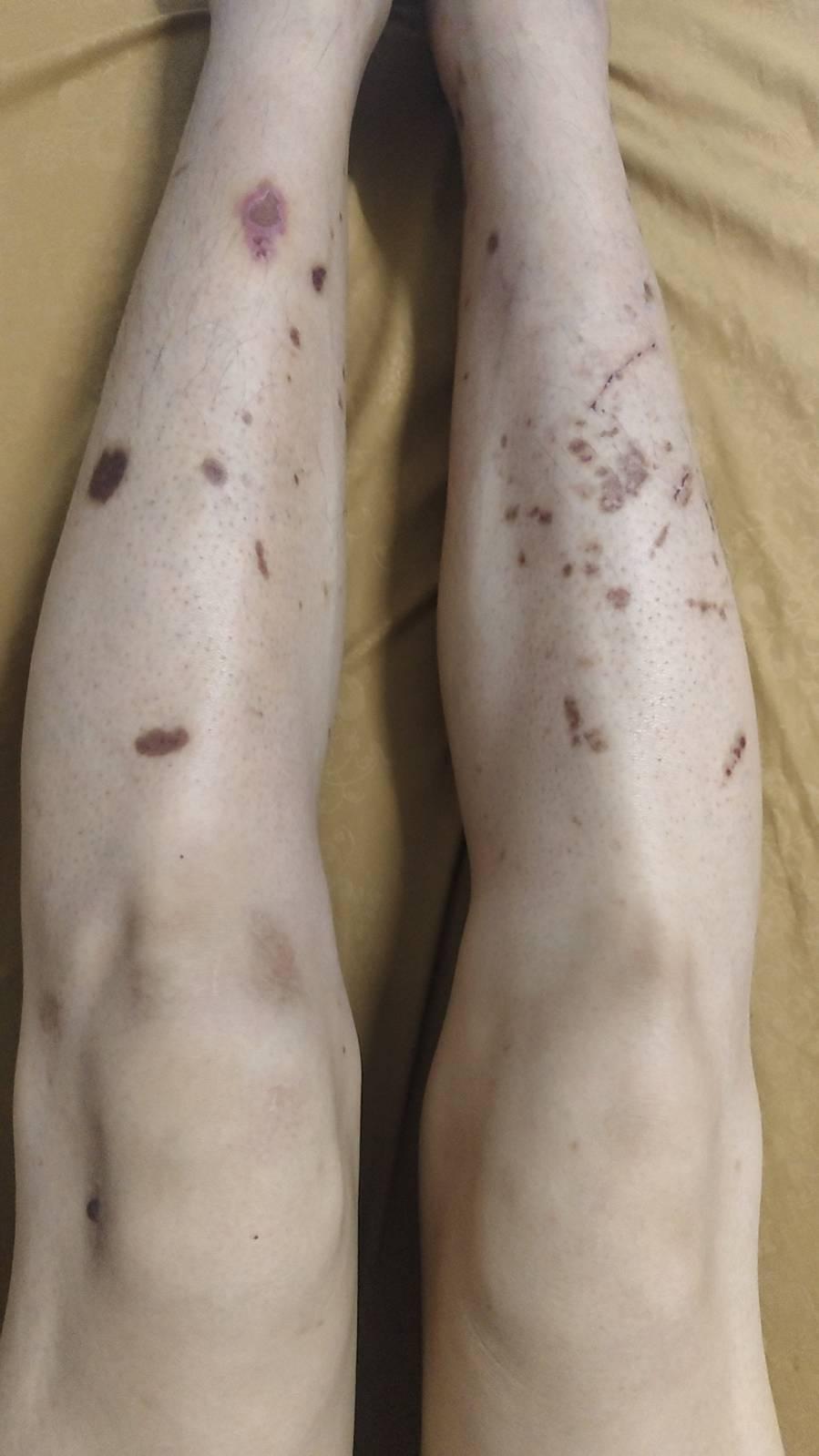รบกวนสอบถามเพื่อนๆ พี่ๆ น้องๆ ที่เคยเจอแผลแบบนี้หน่อยคับ ไม่ทราบว่าเกิดจากอะไร เป็นโรคอะไรหรือป่าว ต้องกินยา ทายา ตัวไหน นานไหมกว่าจะหาย หรือถ้าไปพบแพทย์ ต้องไปแผนกไหนคับ ระยะการรักษานานไหม ใช้ประกันสังคมได้หรือเปล่า ระยะ เวลาที่เป็นมา ก็ประมาณ 2ปีคับ ไม่กล้าใส่ขาสั้นเลย